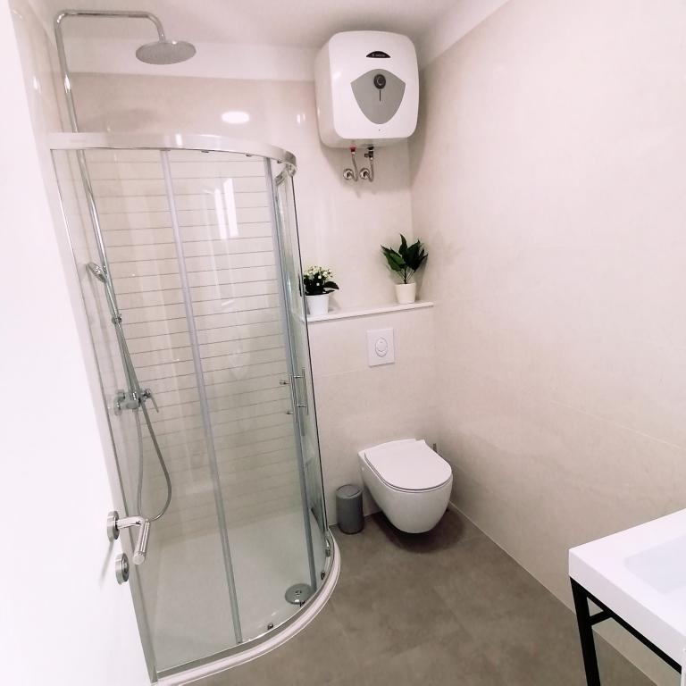 První věc, kterou jsem si hned všiml, je, že byt je EXTRÉMNĚ čistý. Často jsem cestoval služebně a pobýval jsem v hotelech v EU a Velké Británii s ****, kde jsou pokoje méně čisté. Nábytek je nový a funkční a přesně jako na obrázcích. Postel v ložnici je mimořádně pohodlná a ložnice je orientována do zadní části domu, takže do ní nevniká žádný hluk. Sprchový kout je nový a plně funkční. V kuchyni je velká lednice a myčka. Co není na obrázcích jasně vidět, je velikost terasy, která musí být přes 20m2, která je ze tří stran uzavřená a je otevřená do moře a nabízí skvělý výhled. Velkým plusem pro mě je, že parkoviště je kryté a v noci osvětlené. Konstrukce, kterou je zakrytý, je velmi pevná, o čemž jsme se přesvědčili, protože jedné noci byla bouřka a auto bylo pod tím přístřeškem v bezpečí (je zakryté i zezadu směrem k další budově). Majitel bytu je velmi milý, stejně jako starší manželský pár. Vyšla maximálně vstříc všem konkrétním požadavkům a vše nám vysvětlila. Také nám přinesla víno a místní hrozny.