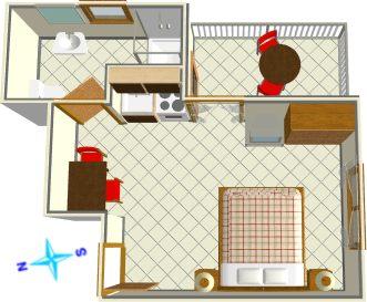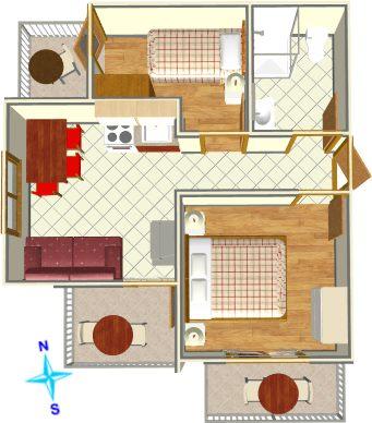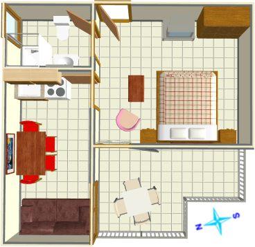 Apartmán pro tři osoby se dvěma přistýlkami (47 m2)
