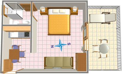 Apartmán pro dvě osoby se dvěma přistýlkami (29 m2)