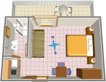 Apartmán pro dvě osoby (15 m2)