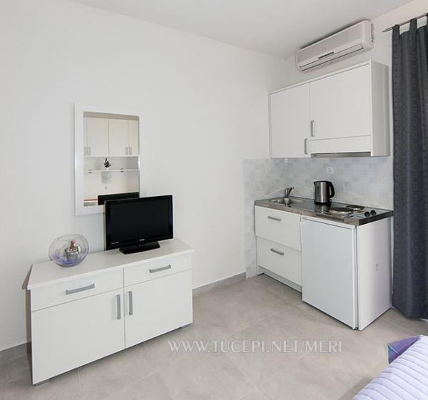 Plně zařízené apartmány v blízkosti centra města, cca 2 minuty chůze od hotelu a 40 metrů od pláže, s velkým parkovištěm před domem