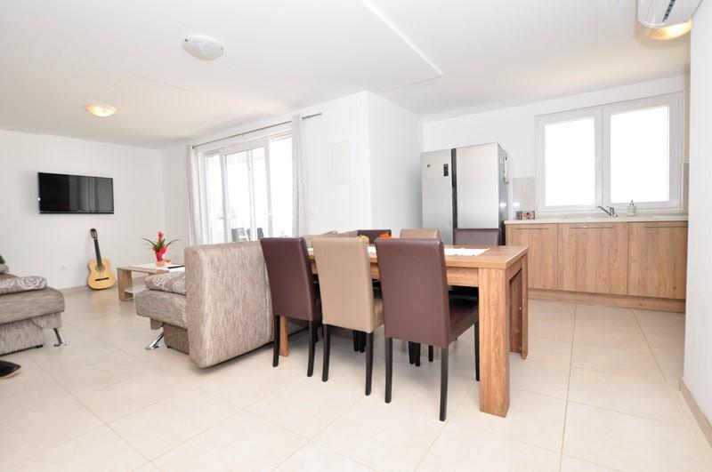 Dům, tedy apartmány, se nachází ve východní části Tučepu a jsou 1 minutu chůze od pláže. Každý ze 3 čtyřlůžkových studio apartmánů je plně vybaven pro dlouhodobý nebo krátkodobý pobyt (klimatizace, kuchyň, lednice, TV atd.). Každý z těchto apartmánů má ložnici s balkonem, malou předsíň, kuchyň a přistýlku pro dvě osoby (2 plus 2). Každý má dva balkony s výhledem na moře. Kromě toho máme další velký byt přes 100m2, který je určitě vybavený pro více osob, 3 ložnice, 3 koupelny, velký obývací pokoj s možností přespání, velká kuchyně, vstupní hala a mnoho dalších doplňkových věcí (TV, pračka, pračka..atd