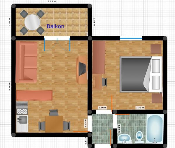 Čistý a uklizený. Všechno je skutečné, jako na obrázcích. Paní Zorica je příjemná a vstřícná. Pláž je blízko, ale byt má svůj vlastní klid, který jsme si užili.