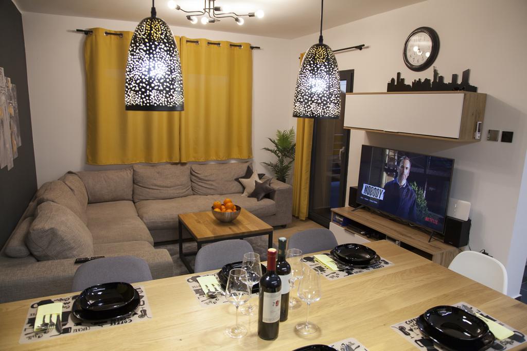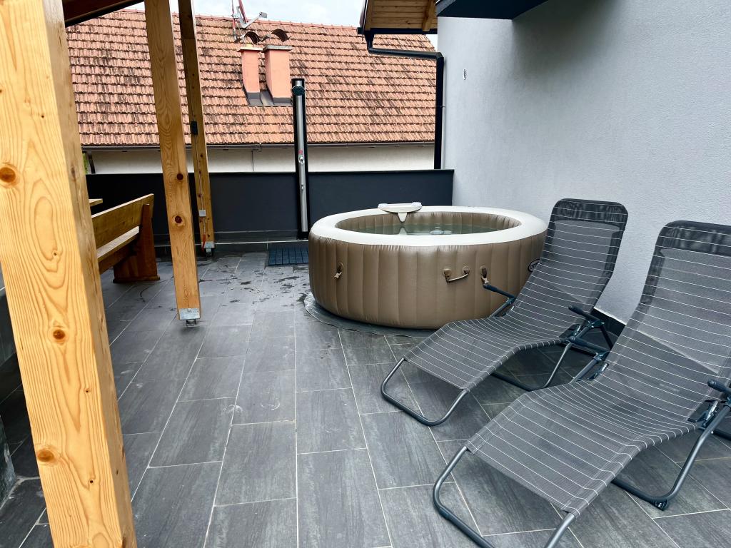 Obklopte se stylově v tomto mimořádném prostoru. Tato moderní 4hvězdičková vila se nachází na klidném kopci nad lázněmi Tuhelj a je z ní nádherný výhled do okolí. Byt v přízemí (38 m2) má vše, co potřebujete pro perfektní dovolenou a ještě více. Plně vybavená kuchyně s troubou, myčkou a mikrovlnkou s veškerým příslušenstvím. Televize s více než 100 programy a Netflix. Venkovní terasa s dřevěnou pergolou, grilem a krásným výhledem vás pokaždé uvolní... Apartmán v patře je dvoupodlažní (70m2) a má 3 ložnice, velký obývací pokoj s plně vybavenou kuchyní, saunu, koupelna a toaleta. TV se 100+ programy, Netflix, konzole PS4, BT rádio atd... Krytá terasa nabízí krásný výhled do okolí. Přístup pro hosty Naši hosté mají k dispozici soukromé parkoviště a garáž, prádelnu, venkovní terasu s grilem a umyvadlem, vířivku (květen-říjen), zahradní sprchu, saunu a mnoho dalšího...