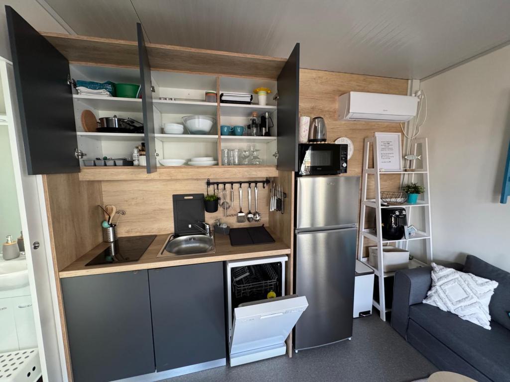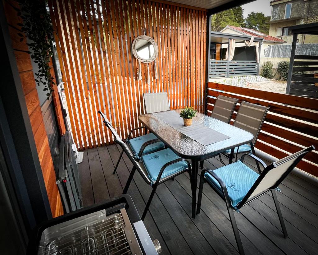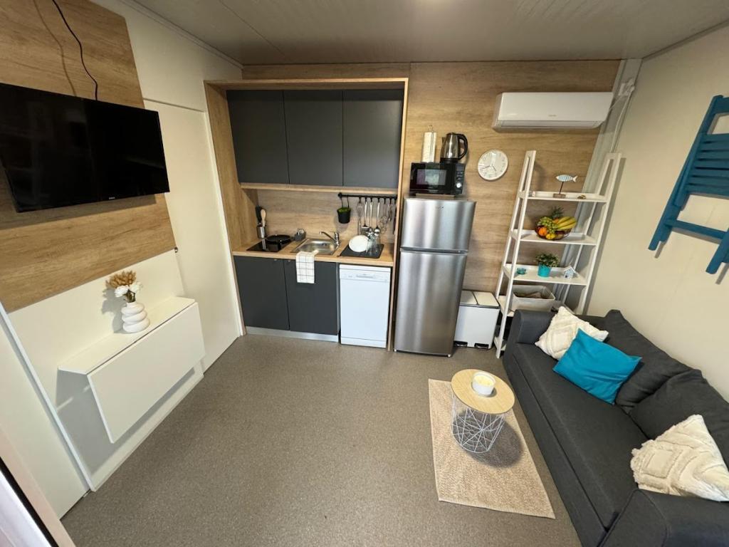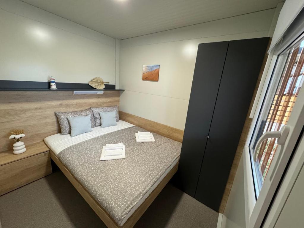 Naše mobilní domy Marea jsou navrženy tak, aby vaše dovolená byla bezstarostná, pohodlná a plná chvil relaxace. Každý dům je pečlivě zařízený a plně vybavený pro příjemný pobyt rodin nebo párů, které hledají soukromí, klid a veškeré vybavení moderního domu u moře. Nacházejí se v malém, oploceném rodinném kempu pouhých 30 metrů od pláže, v klidném městečku Turanj, obklopeném zelení a středomořskou atmosférou. Vybavení a vybavení obou domů: Dvě ložnice s manželskými postelemi Plně vybavená kuchyň (indukční trouba, myčka nádobí, velká lednice) Obývací pokoj: rozkládací pohovka, smart TV, Wi-Fi (Starlink), klimatizace Koupelna: sprcha, ručníky, fén Prostorná terasa s nábytkem a lehátky Bezpečné parkování (Marea 1 - Místo číslo 3 | Marea 2 - Místo číslo 5) Uvítací dárek Domy jsou klimatizované a k dispozici po celý rok, což z nich činí ideální volbu pro letní dovolenou, ale i pro klidný zimní útěk u moře.
