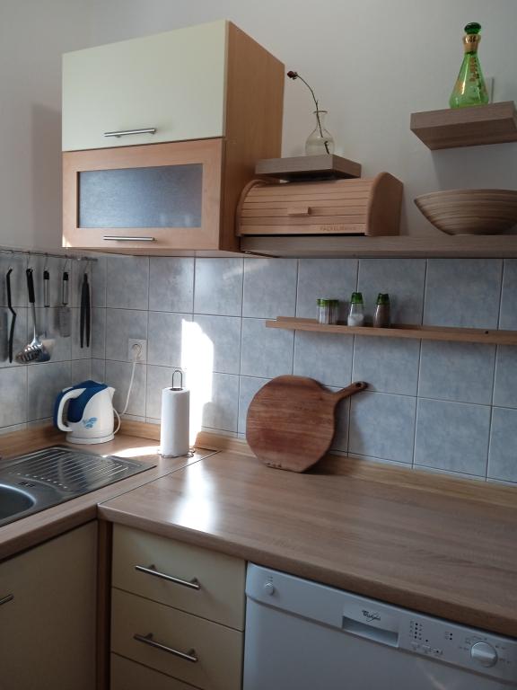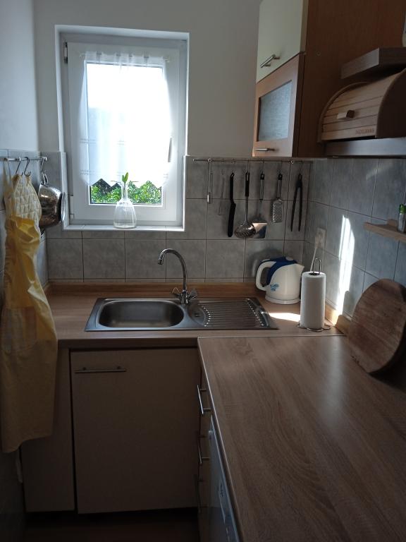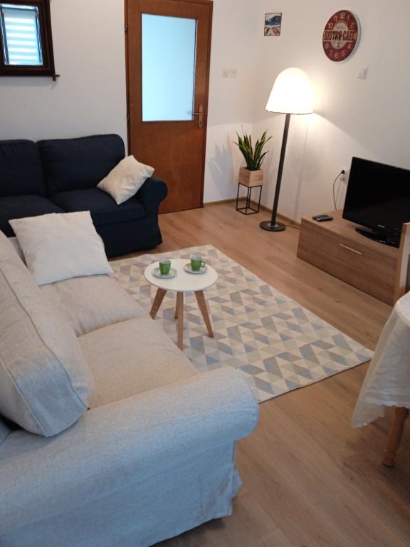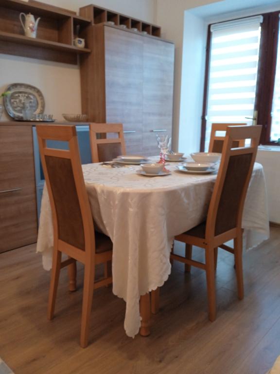 Byt se nachází v patře domu. To má dvě ložnice s manželskou postelí. Každý pokoj má balkon. Také v bytě je obývací pokoj, kuchyň a další balkon. V přízemí se nachází letní kuchyně a terasu a černá kuchyně s krbem, který je používán společně s hostiteli. Ve dvoře je parkoviště. Byt má samostatný vchod. Zdarma wi-fi.