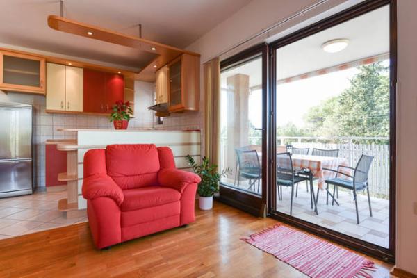 Ugljan je ideálním místem pro vaši dovolenou, ať už hledáte pro rodinnou ubytování, zábavy nebo únik z hektického městského života. Ostrov je spojen s pevninou časté trajekty. Moderní byt v osadě Muline s krásnými západy slunce a pláže je ideální příležitost pro relaxaci dělá. Byt se skládá z ložnice s manželskou postelí, obývací pokoj s manželskou postelí, plně vybavená kuchyň, koupelna a velká terasa s jejím nábytkem. V ceně je zahrnuta pobytová taxa, klimatizace, bezdrátové připojení k internetu, kryté parkovací místo, používat pračku, sušičku a železo, gril a houpačka vhodná pro děti. Byt se nachází jen pár kroků od obchodů, pizzerie, taverny a fast food a autobusového nádraží. Nedaleko jsou písečné a oblázkové pláže (Jižní Harbor) a umístěte nejkrásnější západ slunce na ostrově, a několik kulturních a historických památek.