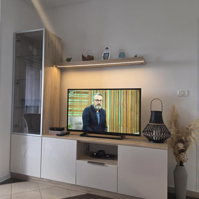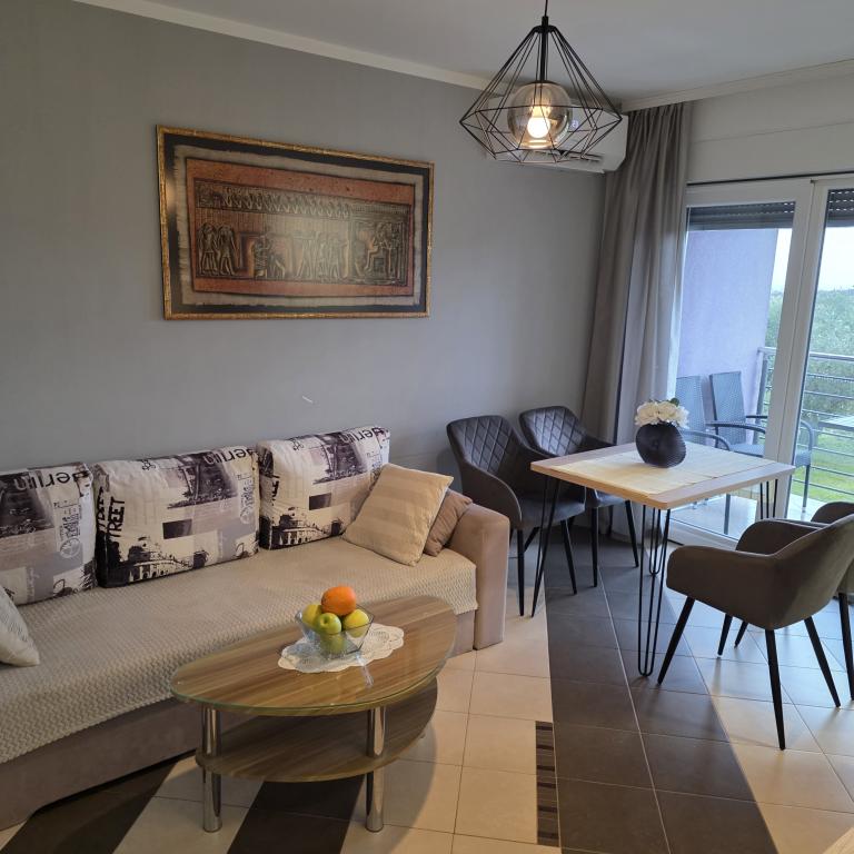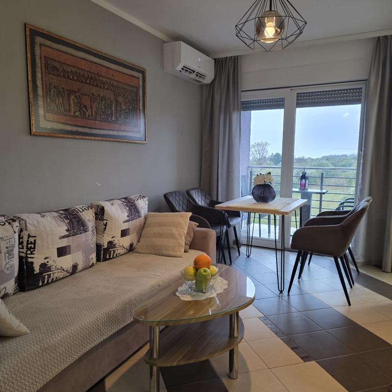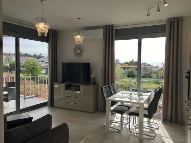 Apartmány Mirella 4 se nacházejí v nově postavené rezidenci Lavender s výhledem na moře a krásným výhledem na západ slunce. K moři a krásné písečné pláži je jen 150 metrů. Obchody, pekařství a restaurace na 200 metrů. Do centra Umagu 3 km. Podél moře je promenáda až do centra Umagu a možností je doprava turistickým vlakem. Apartmány jsou klimatizované a plně vybavené všemi spotřebiči. Koupelna s masážní sprchou, pračkou, fénem, žehličkou. Kuchyň s myčkou, mikrovlnnou troubou, kávovarem, rychlovarnou konvicí, velkou lednicí s mrazákem a vše ostatní, aby se host cítil jako doma. K dispozici je bezplatné připojení na internet a hlídané parkoviště. Cena zahrnuje použití bazénu, lehátek, sprchy, dvoumístných, stolů a židlí v kryté části terasy u bazénu. Děkujeme, že jste si vybrali Apartmány Mirella, doufám, že na oplátku uspokojíme vaše přání během vašeho pobytu v našich apartmánech. Naším cílem je vaše spokojenost a doporučení. Vážení hosté, vítejte v Apartments Mirella!