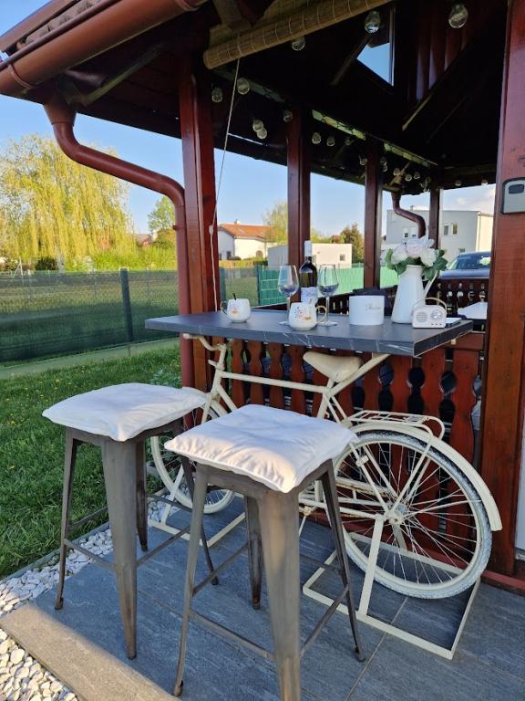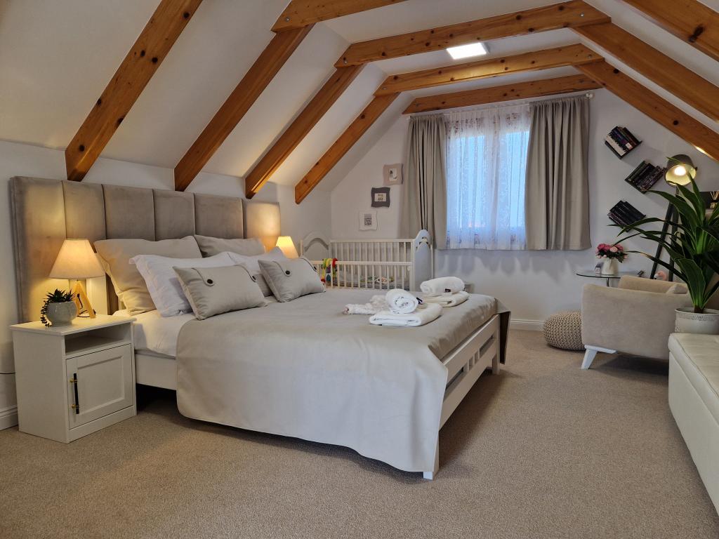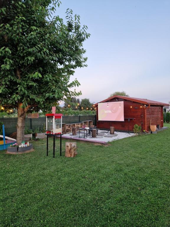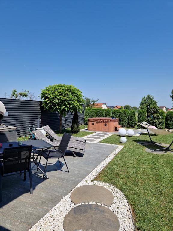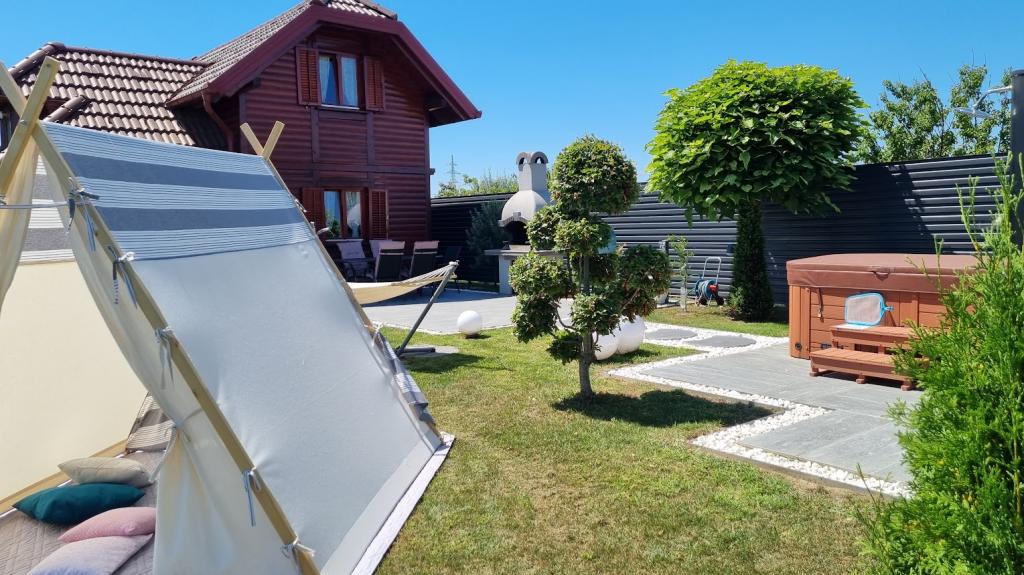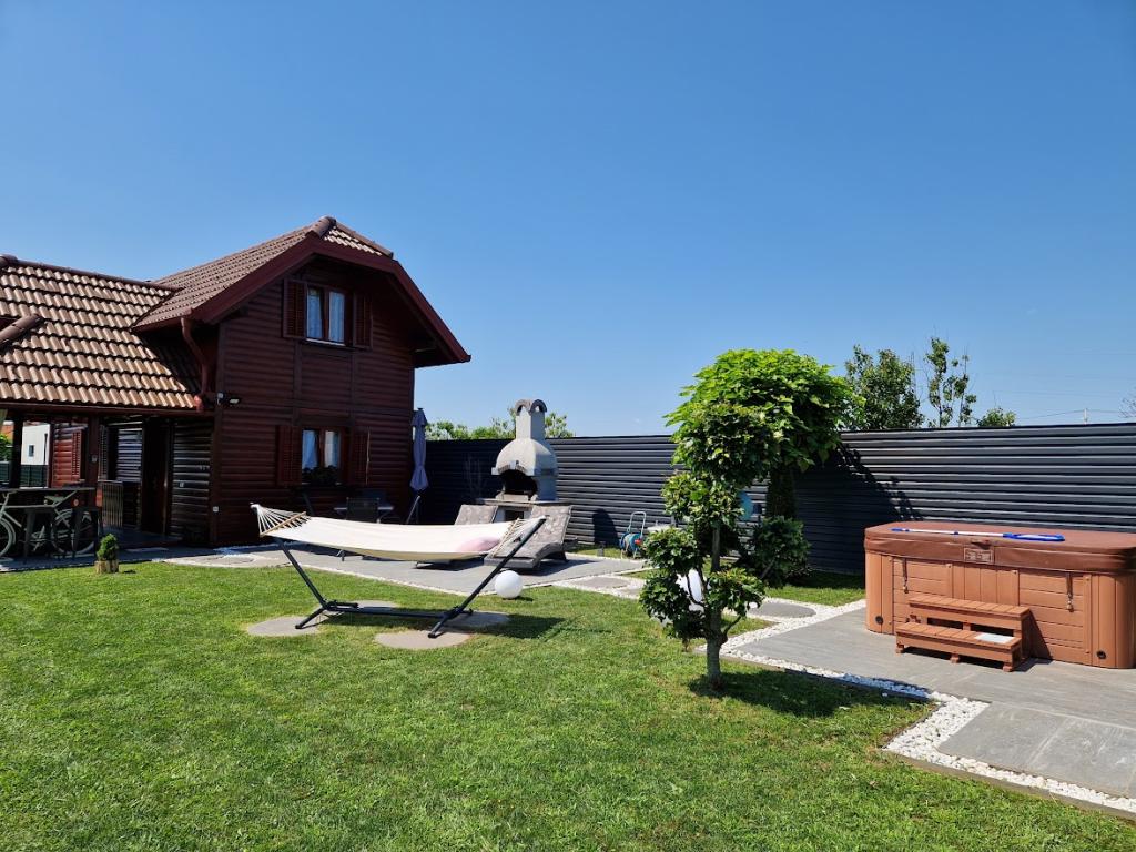 Dřevěný rekreační dům o velikosti cca 60 m2 se nachází 4 km od centra města Varaždin. Nachází se na konci klidné ulice, obklopená zelení. Dům se skládá z prostorného a krásně zdobeného obývacího pokoje, kuchyně, koupelny a terasy v přízemí a ložnice a terasy v prvním patře. Hosté mají také přístup na zahradu s venkovní terasou, prostor pro grilování, společenské vyžití, jacuzzi a venkovní zábavu. Wifi zdarma, parkování ve dvoře zdarma, gril. Vstup do objektu je personalizovaný (diskrétní) pomocí trezoru na klíče a je možný kdykoliv během 24 hodin. Hosté obdrží bezpečnostní kód, když je dům připraven přijmout hosty, ráno v den jejich příjezdu.