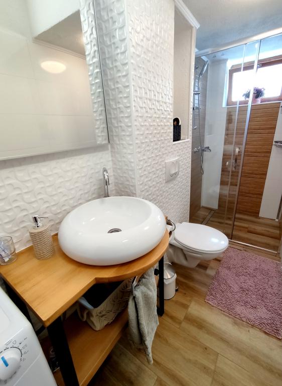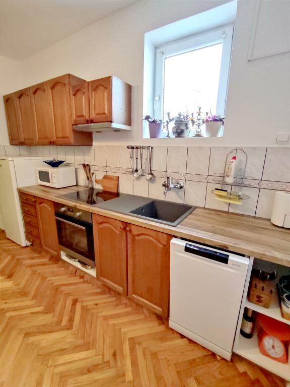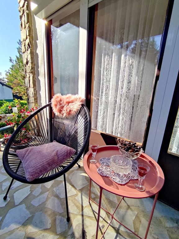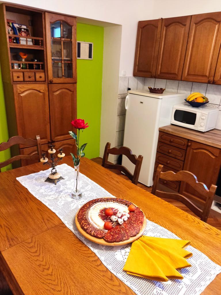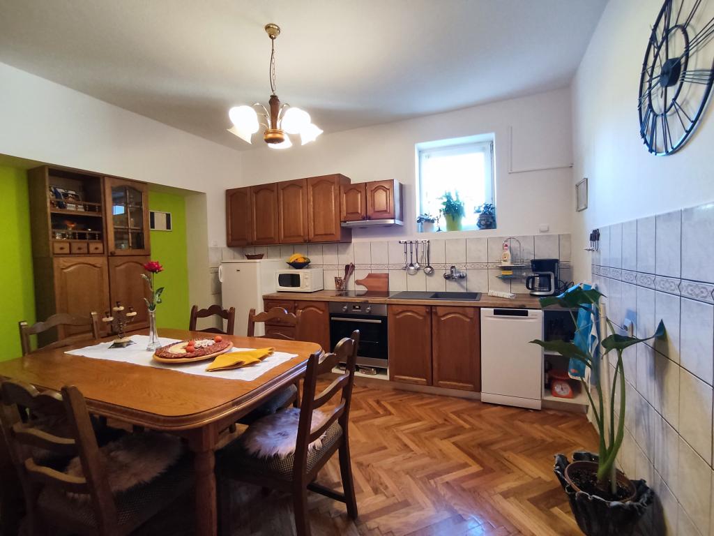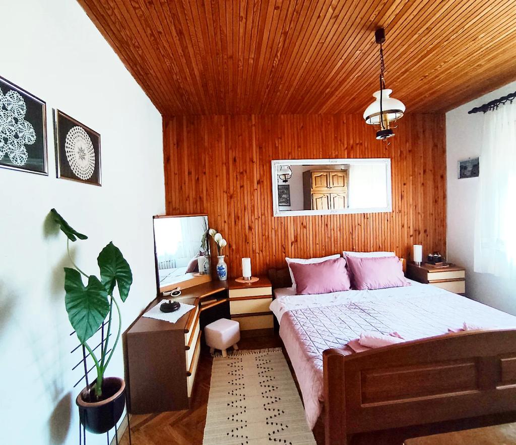 Byt zařízený ve slovanském stylu, modernizovaný, funkční, obklopený stromy a potoky v obci Velika podno Papuka. Kuchyň je vybavena spotřebiči a nádobím pro přípravu a výdej jídel. V ložnici je velká manželská, ručně vyrobená, dubová postel, dále dvojitá šatní skříň, noční stolek a kosmetický stolek se zrcadlem. V prostorném obývacím pokoji je kožená trojsedačka a dvousedačka a smart TV se vstupem na terasu se zahradním nábytkem. V koupelně je podlahové vytápění, sprchový kout a pračka. K dispozici je dvůr s baldachýnem a velkým stolem s lavičkami, grilem, dětským hřištěm a trampolínou. Za budovou je potok, kde můžete rybařit nebo se v horkých dnech osvěžit. Byt se nachází v blízkosti přírodního parku, adrenalinového parku, aquaparku, lesa a vinice. Je 300 m od restaurace, 1000 m od obchodu a čerpací stanice.