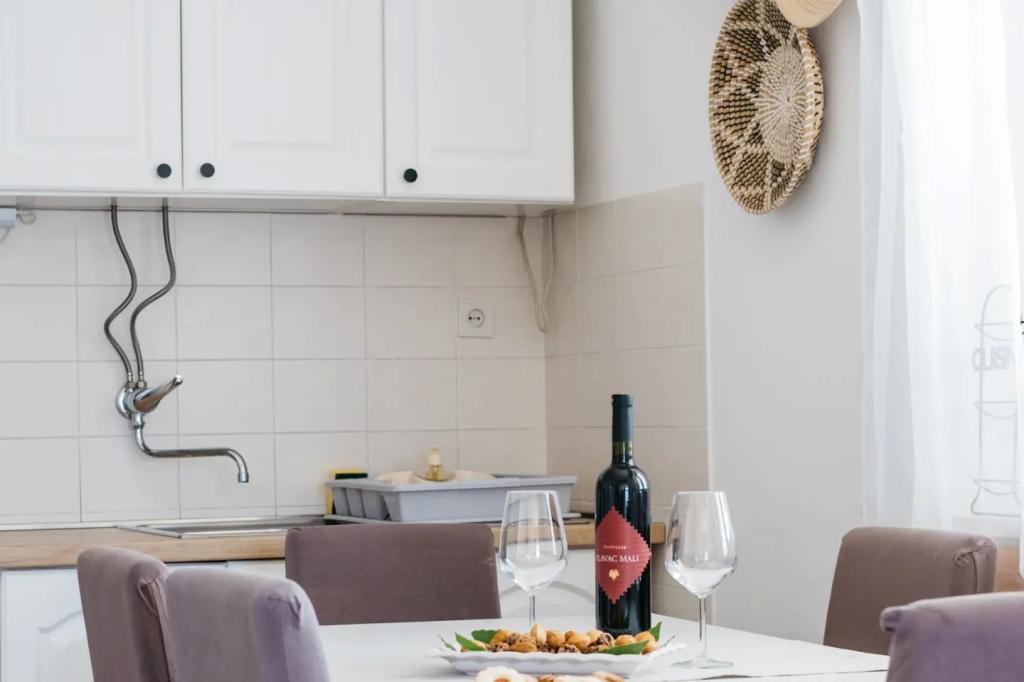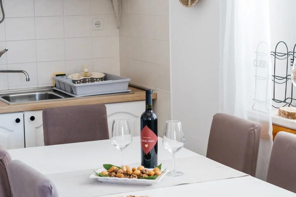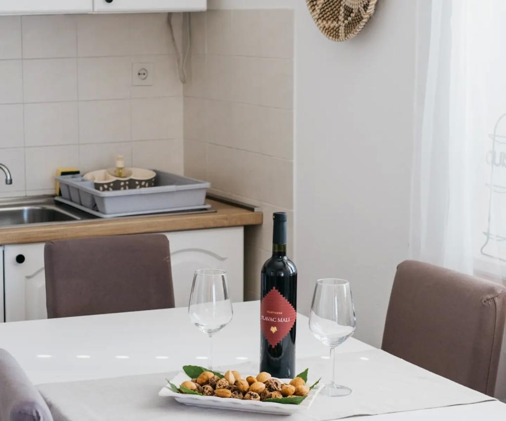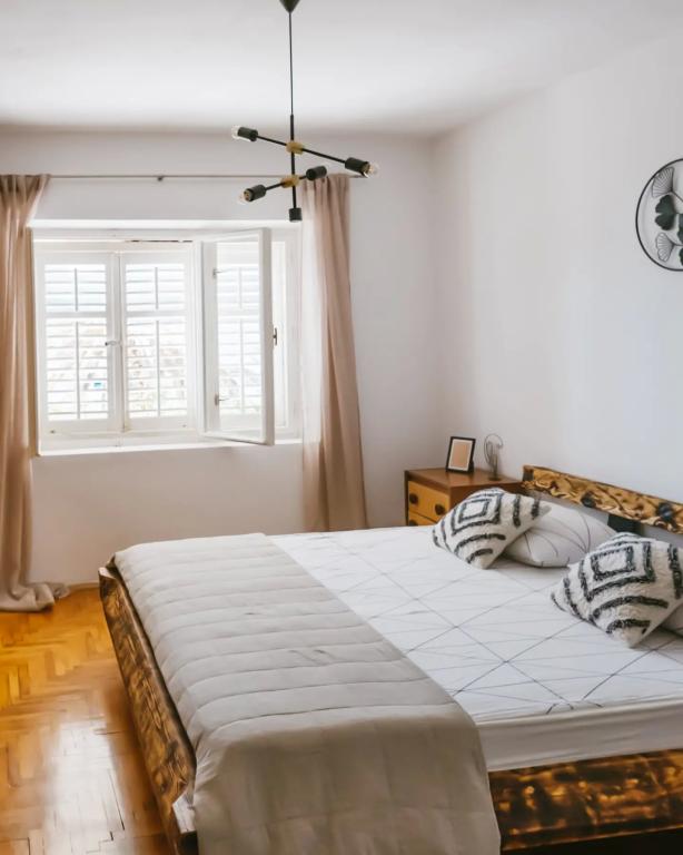 Byt se nachází v patře domu, který je umístěn v blízkosti moře. Vzdálenost od centra města, jen pár minut chůze, kde je obchod a ATM. V bytě je kuchyň, čtyři ložnice a dvě koupelny, Ideální pro velkou rodinu nebo skupinu přátel. V přední části domu je terasa s velkým dřevěným stolem, grilem a houpačkou. K dispozici je také balkon s výhledem na moře na výstupu dva pokoje. Hned v přední části domu jsou dvě (oblázková), pláž a kotviště pro loď. V ceně je zahrnuta taxa, použití internetu a parkoviště. Doufáme, že budeme vaši hostitelé!