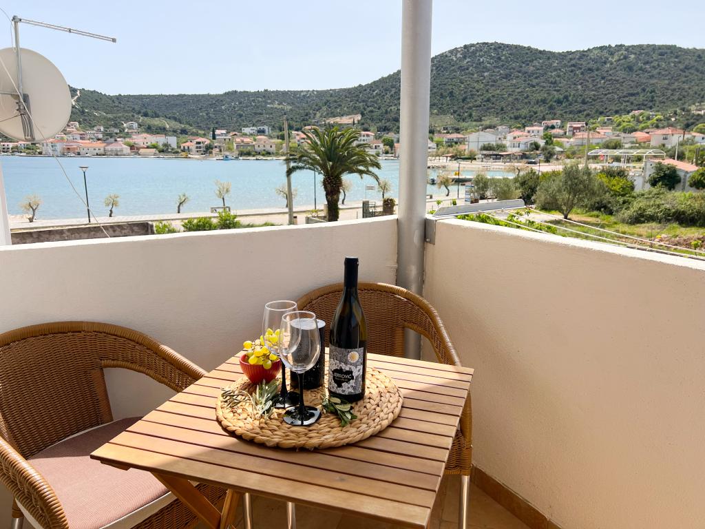 Apartmán Leonora se nachází přímo u pláže, v první řadě u moře, v samém centru malé rybářské vesnice. Nachází se v prvním patře rodinného domu s velkým dvorem. Před domem je udržovaná štěrková pláž, která je ideální pro rodiny s dětmi. Byt je klimatizovaný, s vlastním parkovištěm a možností využití grilu a solární sprchy před domem. Skládá se ze dvou ložnic, velkého obývacího pokoje s rohovou sedací soupravou, kterou lze rozložit a využít ke spaní, prostorné kuchyně s jídelnou a koupelny. Po předchozí dohodě je také možnost instalace přistýlky, stejně jako dětské postýlky. Na jižní straně je obrácena k moři a po celé délce protézy je krytá terasa, která umožňuje vychutnat si krásný výhled na celý záliv. Veškeré potřebné vybavení je vzdáleno maximálně 50 metrů od domu (pekárna, kavárny, restaurace, cestovní kancelář, bankomat). Byt je připraven v závislosti na hostech a chceme, aby se každý host cítil jako doma.
