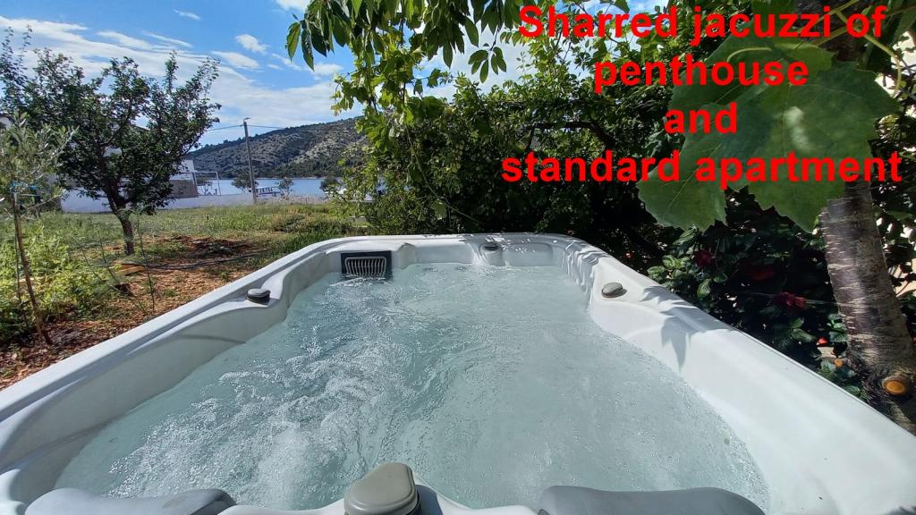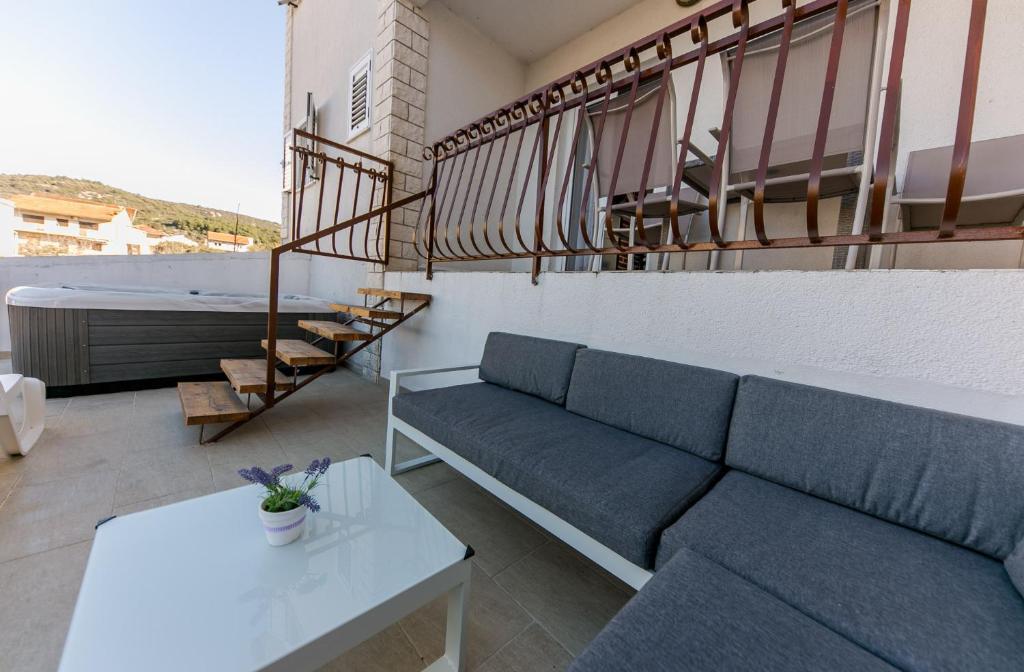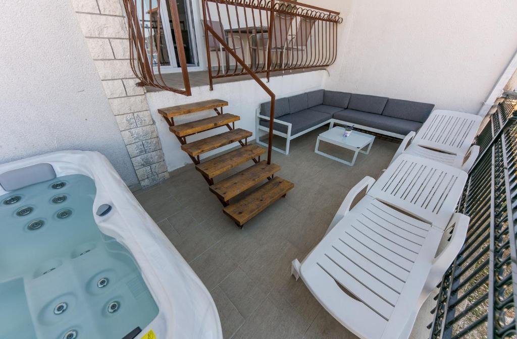 Apartments Mate se nachází ve městě Vinišće, 15 km západně od Trogiru. Dům se nachází 10 metrů od moře a pláže a má velké parkoviště pro 8 aut. Dům má 5 apartmánů: Apartmán (6 2) Přízemí s jacuzzi: 3 ložnice, kuchyň s obývacím pokojem, koupelna a vstupní hala s vířivkou. Apartmán (7) První patro s jacuzzi: 3 ložnice, kuchyň s obývacím pokojem, 2 koupelny a velká terasa s jacuzzi. Apartmán (5 1) Penthouse: 2 ložnice, kuchyň s obývacím pokojem, koupelna a velký balkon. Společná jacuzzi. Apartmán (4) První patro s jacuzzi s: 2 ložnicemi, kuchyní, koupelnou a velkou terasou s jacuzzi. Apartmán (4) Druhé patro: 2 ložnice, kuchyň, koupelna a balkon. Společná jacuzzi Všem hostům je k dispozici venkovní gril. Hosté mohou využít jízdní kola, kajak a sup board. Dům je: - 10 metrů od moře a pláže - 100 metrů od restaurace - 150 metrů od obchodu