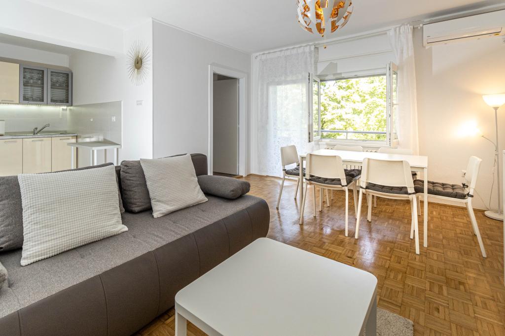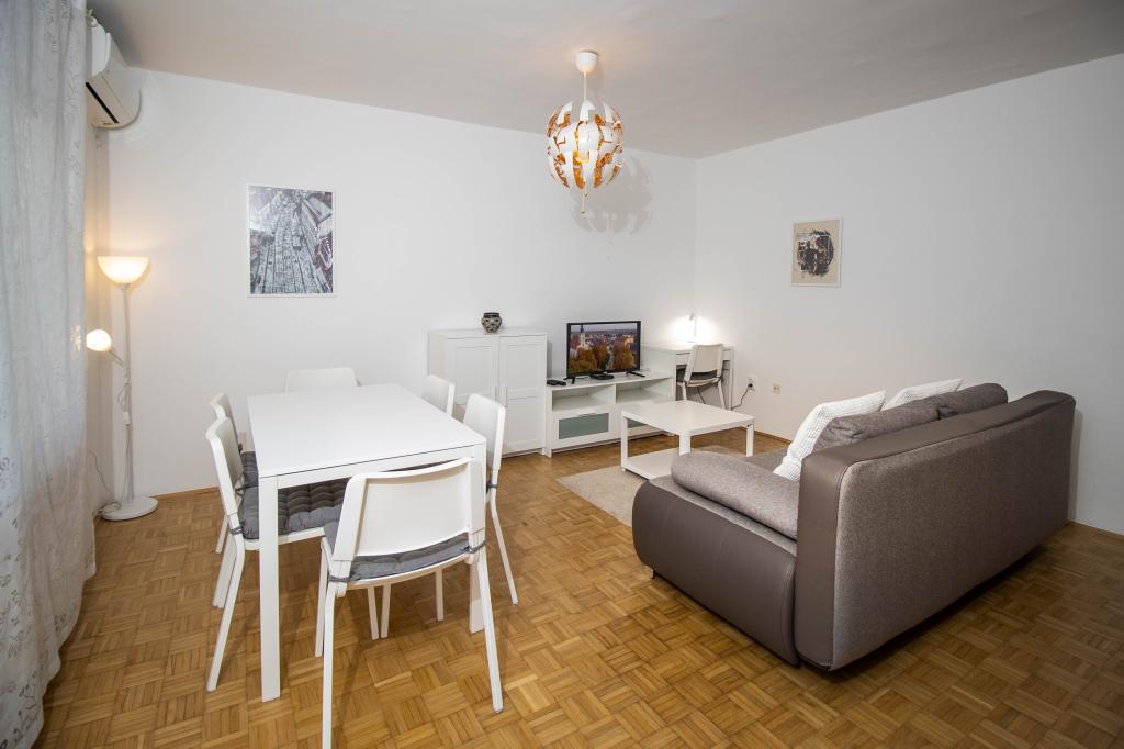 Výborná poloha v centru města! Kompletně nově zrekonstruovaný apartmán (58m2) pro pohodlné ubytování pro čtyři až šest osob. Velký obývací pokoj (rozkládací pohovka na přistýlku pro dvě osoby), balkon, dvě ložnice (každá s postelí pro dvě osoby), kuchyně, koupelna se sprchovým koutem a předsíň. Plně vybavená kuchyň, pračka/sušička, klimatizovaný prostor, wi-fi (optické připojení k internetu), 120 TV programů, krásný balkon...