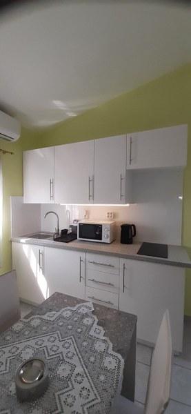 Plně vybavený byt, TV, klimatizace, wi-fi, indukční varná deska, mikrovlnná trouba, lednice. Apartmán je v prvním patře, skládá se z kuchyně, koupelny a dvou pokojů, jeden s manželskou postelí a druhý se dvěma lůžky, z nichž je terasa s výhledem na moře. Moře a pláž jsou vzdálené 20 metrů. Těšíme se na vaši návštěvu a jsme vám vždy k dispozici pro dotazy ohledně rezervací.