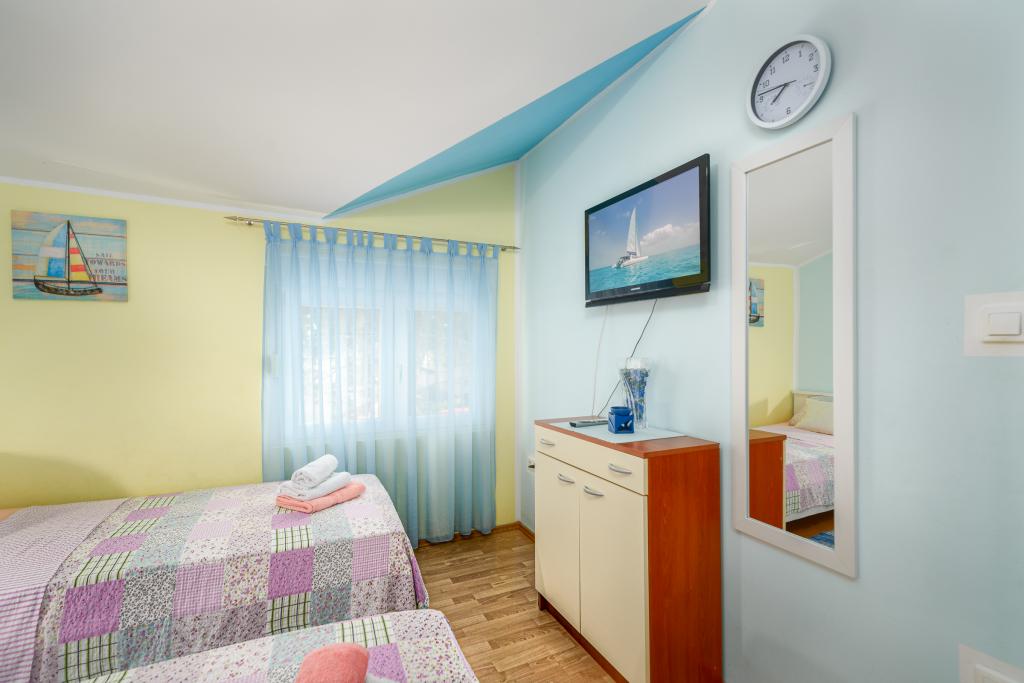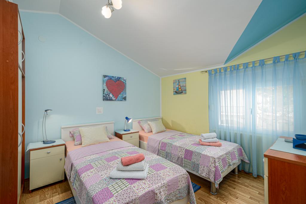 Apartmán Lela se nachází v prvním patře. V bytě jsou dvě ložnice, dvě koupelny, velký obývací pokoj s kuchyní a jídelním koutem a velká terasa. Pláž je 100 m od bytu, obchod také 100 metrů. Na pláži je restaurace s rychlým občerstvením a kavárna. Ulice je klidná, provoz je pouze pro obyvatele ulice. K bytu náleží vlastní parkovací místo ve dvoře, gril a velká terasa. Pláž je betonová s oblázky a 200 metrů od ní je zátoka s písečnou pláží. Obchod a pekárna jsou 100 metrů od apartmánu. V bytě je městská voda, klimatizace a bezplatné připojení na internet. Organizované výlety přes turistickou kancelář Vir k vodopádům Krka, Kornati, Plitvická jezera a další zajímavé cíle. Půjčovna kol, motorových člunů a lodí, škola potápění. Chceme, abyste se ve svém bytě ve svém domě cítili pohodlně a aby váš pobyt ve Viru zůstal ve vašich příjemných vzpomínkách :) Těšíme se na váš příjezd