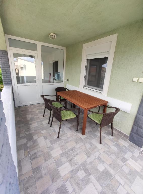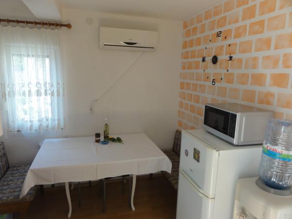 Byt se nachází v klidné části ostrova, v prvním patře se samostatným vchodem a terasou. Byt se skládá ze dvou ložnic, obývacího pokoje, kuchyně s jídelnou, koupelny a terasy. K dispozici je parkovací místo ve dvoře a možnost využití grilu. Byt je vybaven LCD TV, ohřívačem vody, myčkou, mikrovlnnou troubou, toustovačem, fénem, žehličkou a je zde možnost použití pračky. Oblázková pláž je vhodná pro rodiny s malými dětmi a je vzdálena 220 metrů od apartmánu a na pláži je malá kavárna.