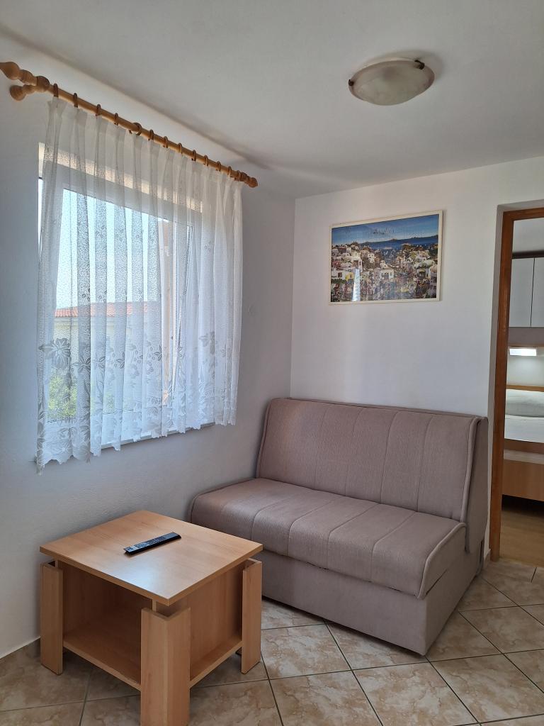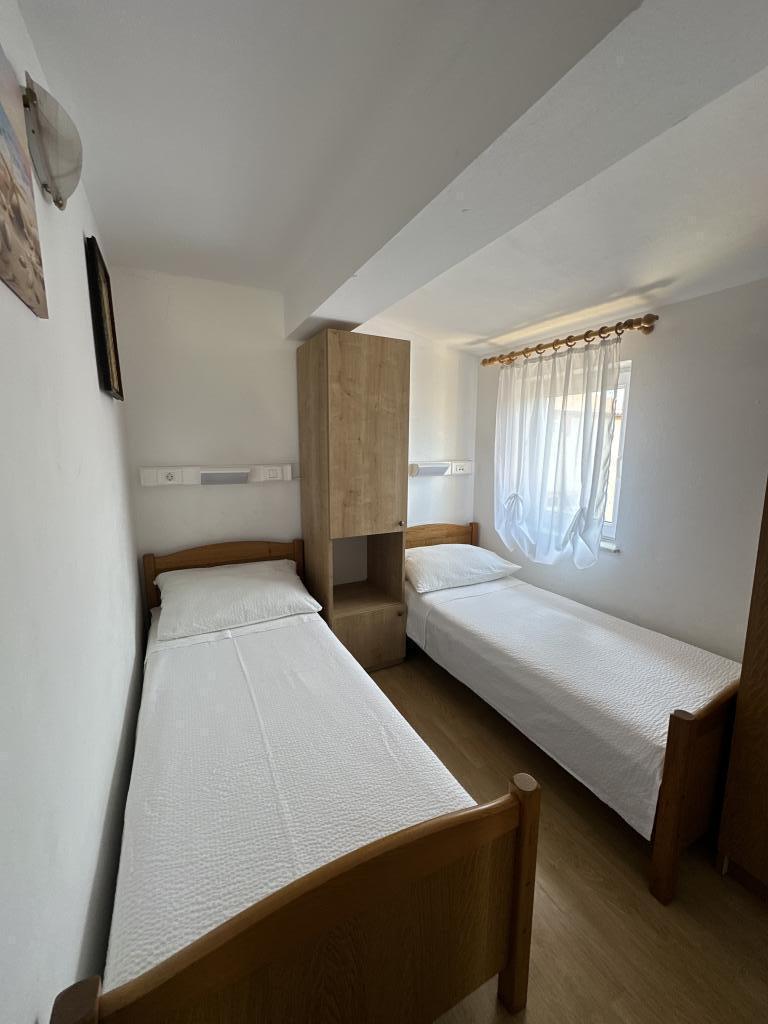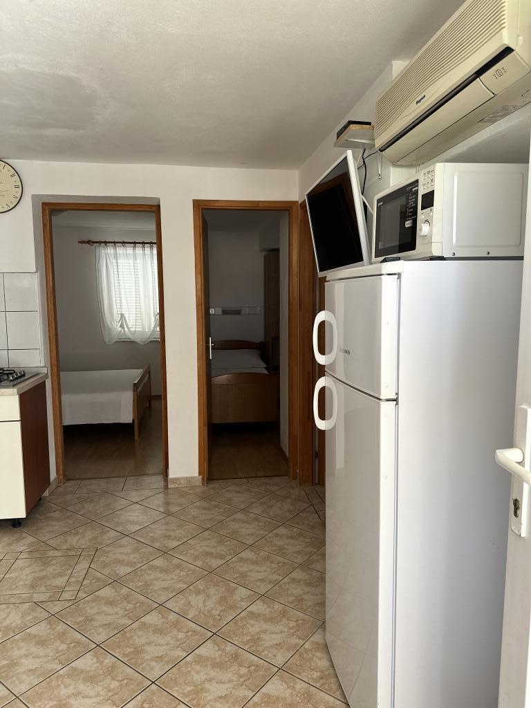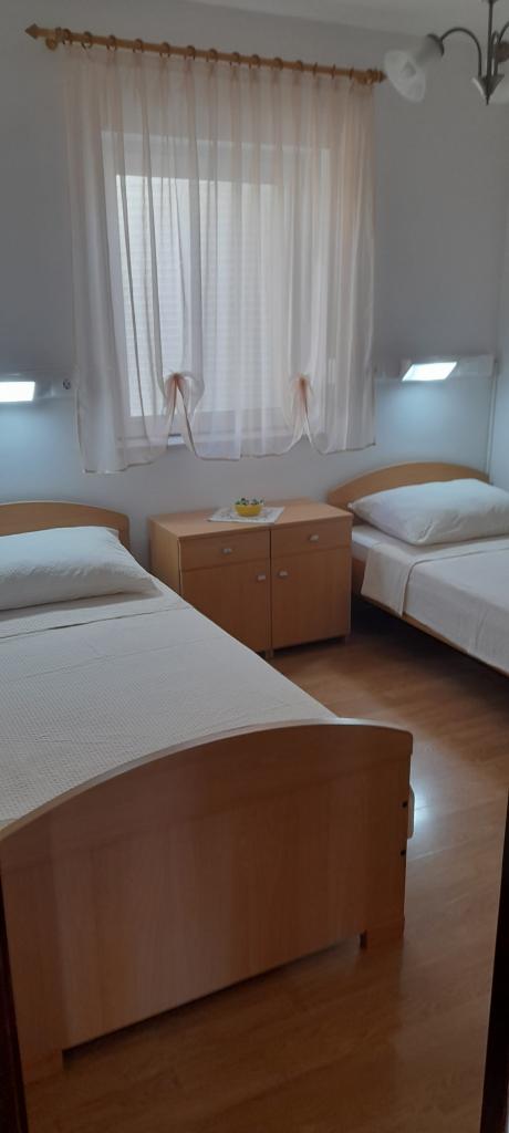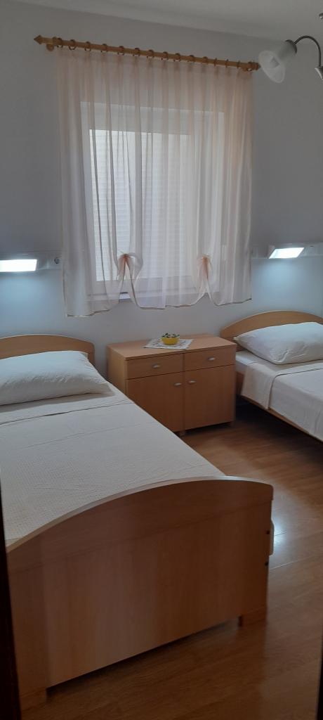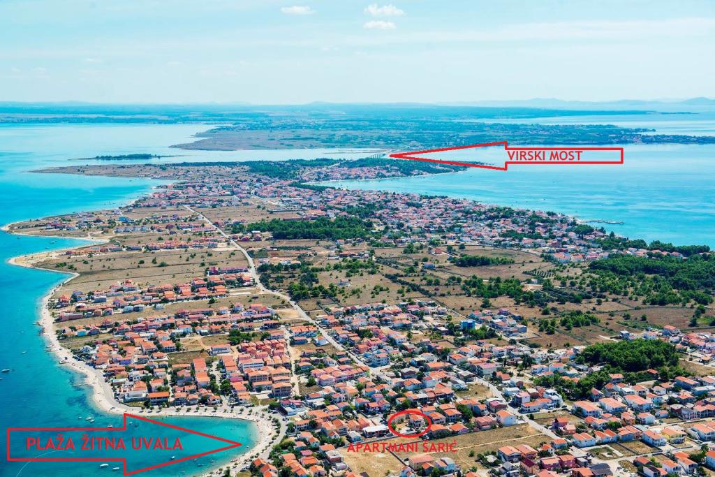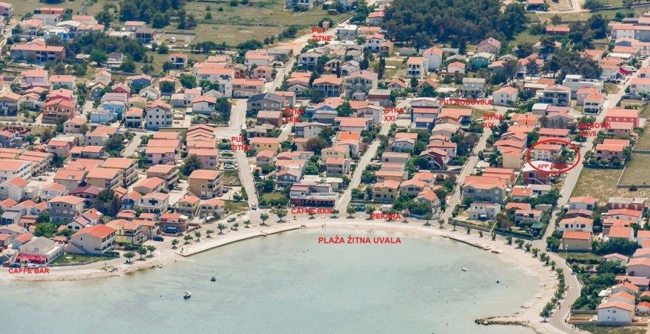 V domě jsou tři byty. Dva mají dvě ložnice, obývací pokoj, kuchyň, koupelnu a velkou krytou terasu. Každý má jeden pokoj s manželskou postelí a druhý pokoj se dvěma samostatnými lůžky. Třetí apartmán má jednu ložnici s manželskou postelí, kuchyň, koupelnu a také velkou krytou terasu. Všechny pokoje mají lůžkoviny. V kuchyni je nádobí na vaření a servírování jídel, stejně jako mikrovlnná trouba a rychlovarná konvice. Každý apartmán má klimatizaci, která je zahrnuta v ceně. Všechny apartmány mají samostatný vchod. U domu je parkoviště, které je k dispozici všem hostům. Lze použít i gril. Pláž Žitna uvala je vzdálená 80 m. Pláž je oblázková a moře je písčité. Podél pláže vede promenáda a cyklistická stezka, stejně jako několik kaváren, restaurací, cukráren a pekáren. V okruhu 100 m je několik obchodů. Centrum města Vir je vzdáleno 1800 m.