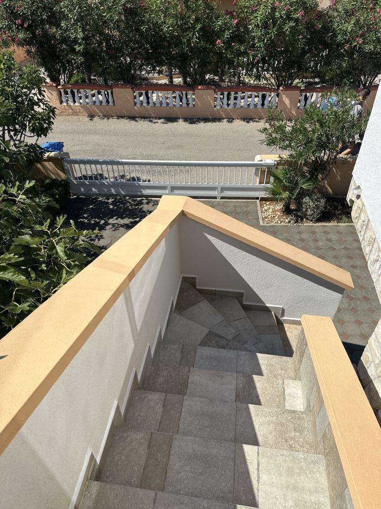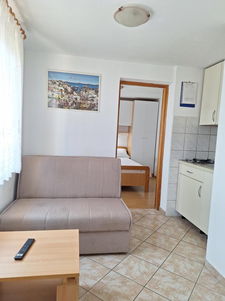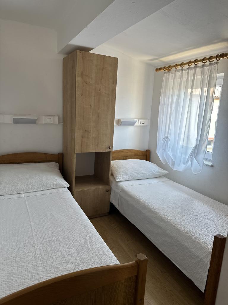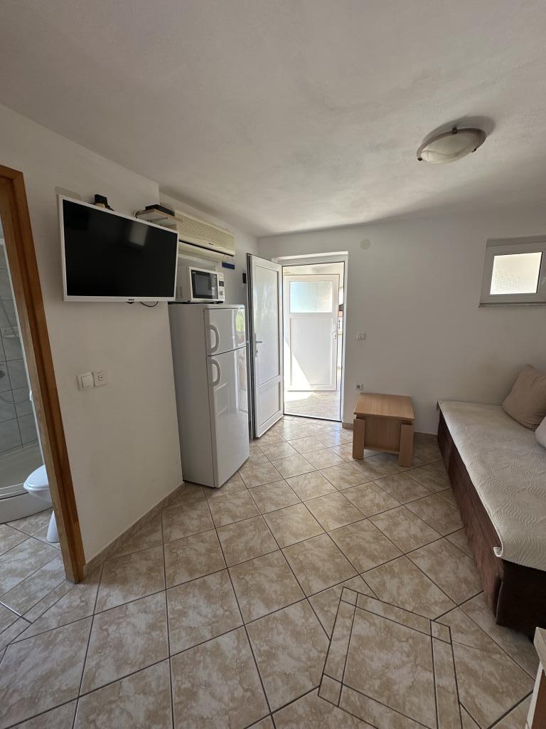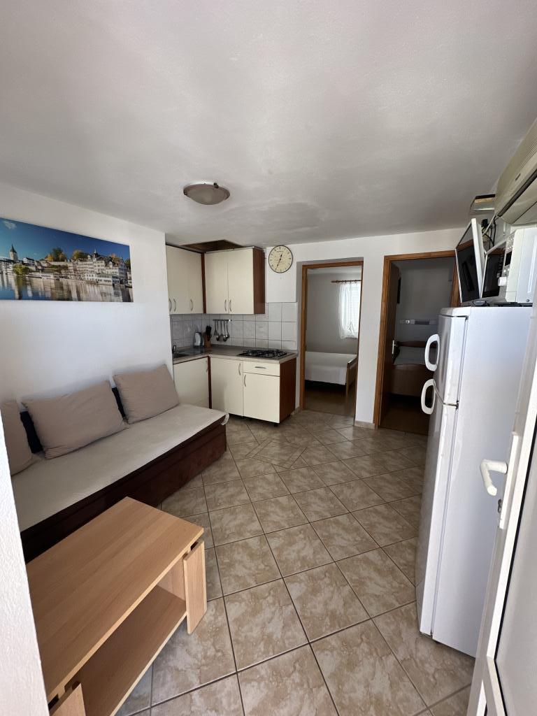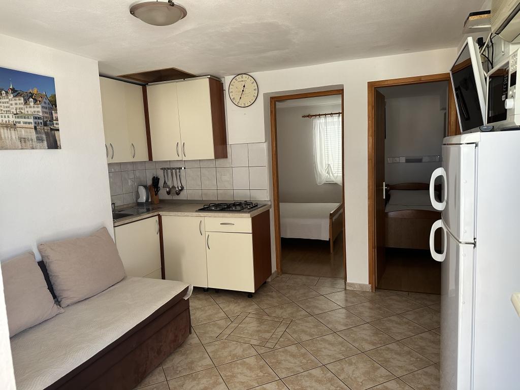 V domě jsou tři byty. Dva mají dvě ložnice, obývací pokoj, kuchyň, koupelnu a velkou krytou terasu. Každý má jeden pokoj s manželskou postelí a druhý pokoj se dvěma samostatnými lůžky. Třetí apartmán má jednu ložnici s manželskou postelí, kuchyň, koupelnu a také velkou krytou terasu. Všechny pokoje mají lůžkoviny. V kuchyni je nádobí na vaření a servírování jídel, stejně jako mikrovlnná trouba a rychlovarná konvice. Každý apartmán má klimatizaci, která je zahrnuta v ceně. Všechny apartmány mají samostatný vchod. U domu je parkoviště, které je k dispozici všem hostům. Lze použít i gril. Pláž Žitna uvala je vzdálená 80 m. Pláž je oblázková a moře je písčité. Podél pláže vede promenáda a cyklistická stezka, stejně jako několik kaváren, restaurací, cukráren a pekáren. V okruhu 100 m je několik obchodů. Centrum města Vir je vzdáleno 1800 m.