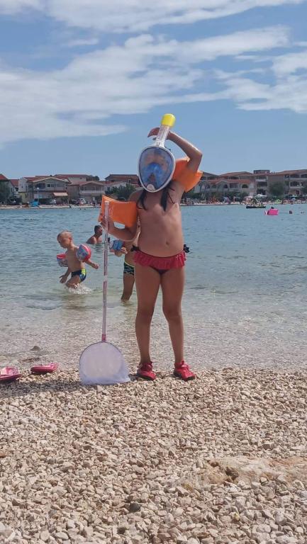 Pronajímám nově zrekonstruovaný dvoupokojový klimatizovaný apartmán, plně vybavený pro rodinu až 4 osob. Se dvěma ložnicemi, obývacím pokojem s postelí, TV/satelit, smart/Wifi. Kuchyň plně vybavená nádobím. Koupelna se sprchovým koutem. Venkovní sprcha uvnitř. Apartmán má velkou terasu/balkon, kde si můžete užívat příjemný stín až do pozdního odpoledne, bezplatné parkovací místo pro vaše auto. (Na vyžádání v případě potřeby i prádelna). Gril - pro hosty k dispozici. Apartmán je 150 m od pláže/moře, 4 minuty chůze po ulici. Pláž je oblázková, v blízkosti je písčitá pro děti, kde jsou kavárny, restaurace, zmrzlina... Obchod je vzdálen 100 m, restaurace 80 m, větší nákupní centra 1000 m. Centrum Viru je vzdálené 1500 m. Apartmán se nachází v klidné oblasti, na ulici, která není rušná.