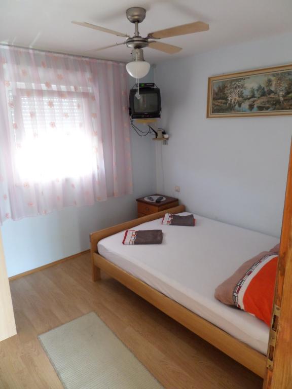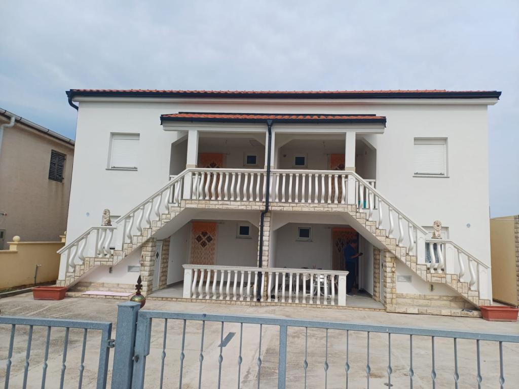 Dům se skládá ze 4 bytových jednotek, 2 na patře. Celkem jsou k pronájmu 3 apartmány, 2 v horním patře a 1 apartmán v suterénu. Všechny jednotky jsou identické se 2 ložnicemi, terasou, halou, plně vybavenou kuchyní a koupelnou. Každá jednotka má LCD TV se satelitními programy a klimatizaci. K dispozici je gril a posezení na zahradě. Každá jednotka má však také vlastní soukromou terasu/balkon. Pláže v okolí jsou převážně oblázkové, ale voda má nejjemnější písek. Zvláště vhodné pro rodiny s dětmi. Klimatizace za příplatek 1 €/hodinu.