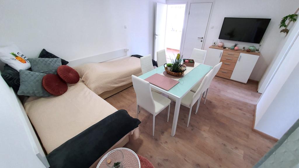 Všechna doporučení pro tento krásný byt, má vše, co mám na mysli, vše, co potřebujete, moderní, elegantní a čisté jak uvnitř bytu, tak na dvoře. Terasa ráno trochu slunce, odpoledne stín pro zábavu. S majiteli se příjemně pracuje, nevtíraví. Pěkně přivítán a odveden. Klidná lokalita, snadná procházka na pláž, centrum. PS višeň extra