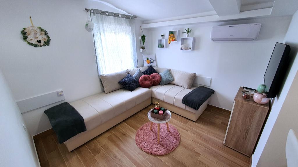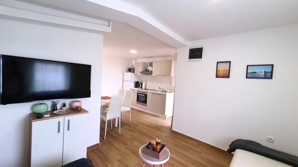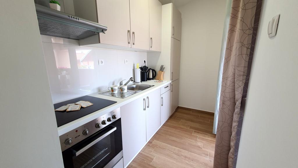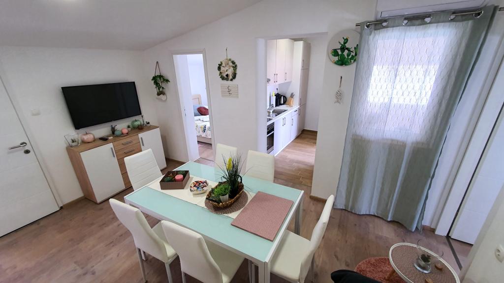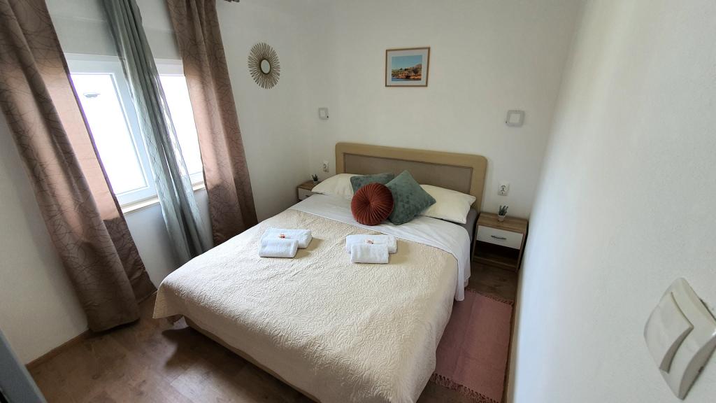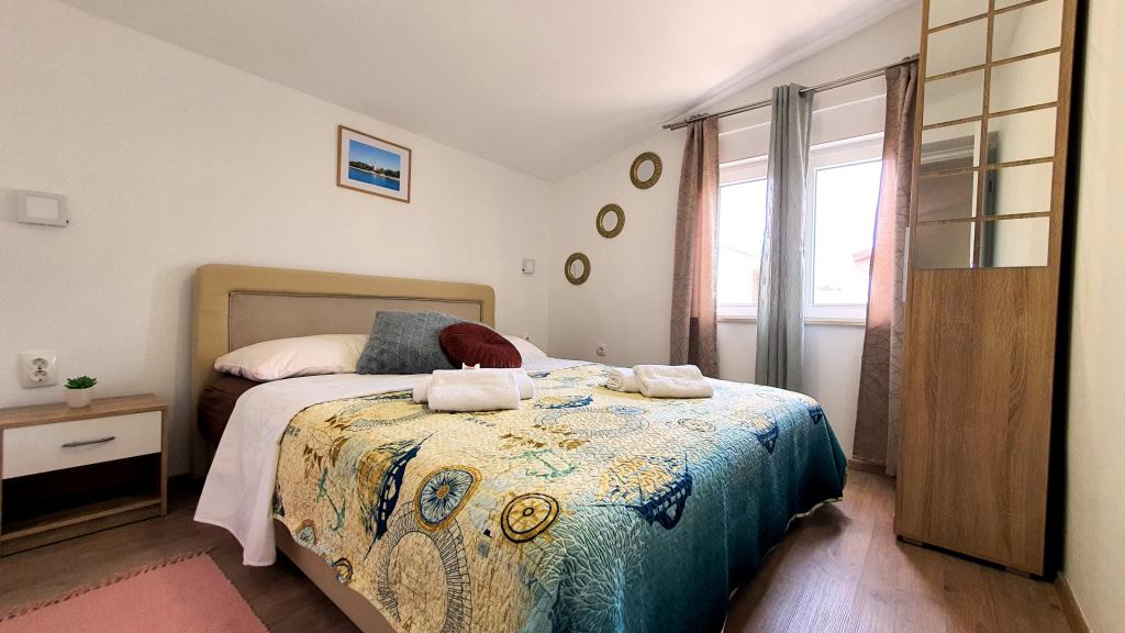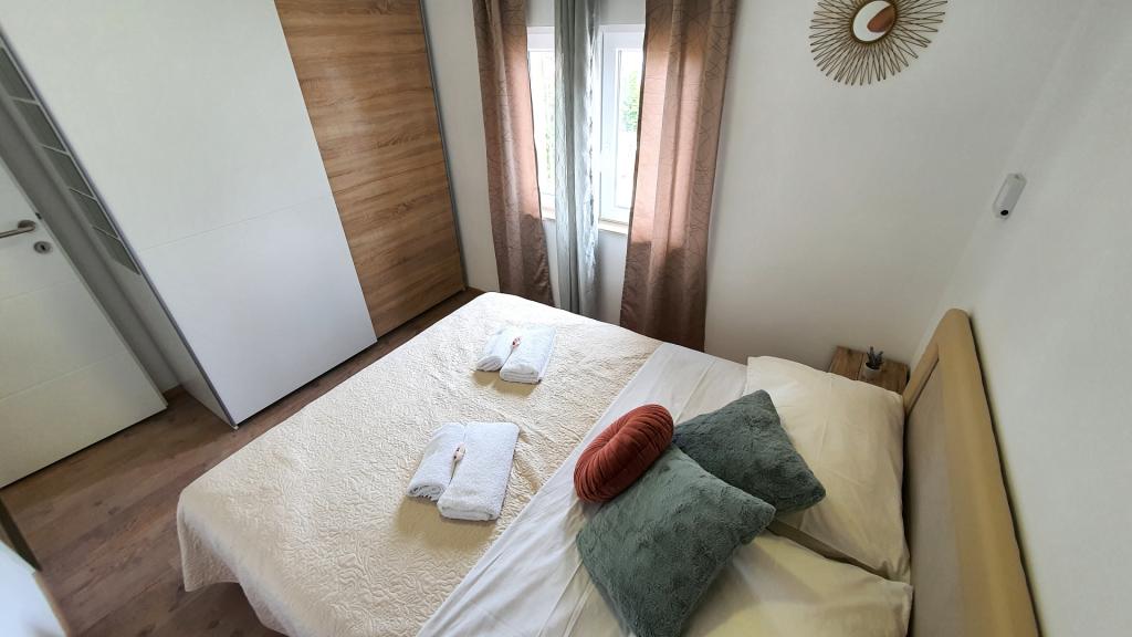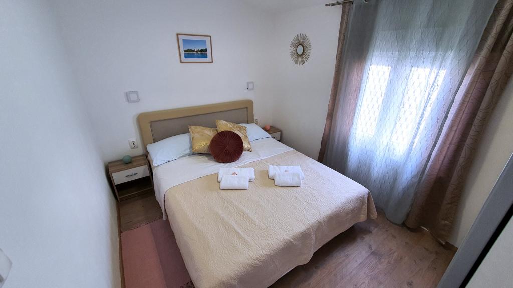 Nově zařízené, moderní apartmány na ostrově Vir jsou vybaveny vším, co potřebujete pro příjemnou a relaxační dovolenou. Apartmány se nacházejí v prvním patře rodinného domu a každý z nich má vlastní velkou terasu, plně vybavenou kuchyň, koupelnu a ložnici a přilehlé parkovací místo, které je pro bezpečnost vašeho auta pod 24hodinovým kamerovým dohledem. Apartmány se nacházejí v klidné části ostrova bez nočního hluku a jsou vhodné pro hraní s dětmi, protože mnoho pláží má písčité dno a jsou ve většině částí velmi mělké, což z nich činí ideální volbu pro rodiče s dětmi. V blízkosti se nacházejí různé pláže, promenády a také veškeré další vybavení, jako jsou obchody, pekárny, kavárny, restaurace, lékárny, kliniky, kostely, pošty a autobusové nádraží. Všechna zařízení jsou v docházkové vzdálenosti a během pobytu není nutné používat auto. Všechny apartmány mají Wi-Fi, klimatizaci a pračku, které jsou zahrnuty v ceně. Pro všechny další informace a dotazy nás neváhejte kontaktovat.