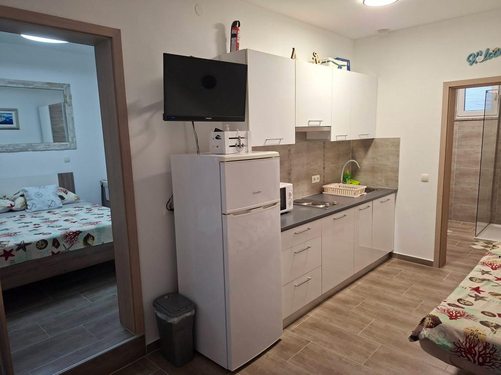 Na ostrově Vir, pouhých 150 metrů od moře, se nacházejí dva apartmány s kapacitou až 5 osob. Apartmány jsou moderně vybavené, klimatizované a přizpůsobené pro pohodlný pobyt. Každý apartmán má vlastní terasu s posezením a v oploceném dvoře mají hosté přístup k soukromému parkovišti a grilu. Blízkost moře a pláže spolu s praktickým vybavením činí z těchto apartmánů vhodnou volbu pro rodiny a malé skupiny přátel, které hledají ubytování v bezprostřední blízkosti všech hlavních zařízení. Apartmány jsou vhodné pro ubytování až 5 osob. Skládají se ze dvou ložnic, apartmány mají koupelnu se sprchovým koutem a pračkou a plně vybavenou kuchyň propojenou s obývacím pokojem. Pro relaxaci a venkovní pobyt je k dispozici také terasa s posezením. Apartmány jsou klimatizované a moderně zařízené, ideální pro rodinnou dovolenou nebo pobyt v menší skupině přátel.