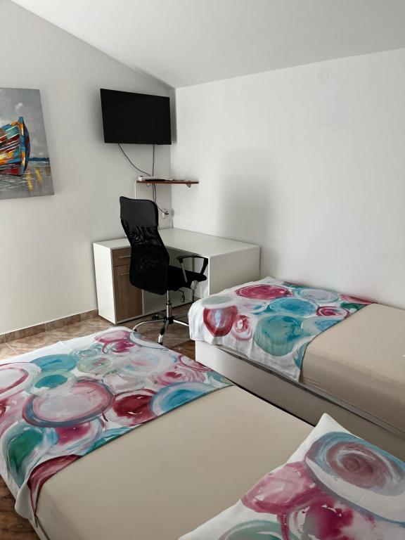 Rodinné apartmány Ivana se nacházejí na ostrově Vir v oblasti Soldatica, 200 m od stejnojmenné oblázkové pláže. Apartmány jsou vybaveny veškerým zařízením nezbytným pro Váš příjemný pobyt. Jižní apartmán má dvě prostorné ložnice, jednu s manželskou postelí a druhou se třemi samostatnými lůžky. Prostorný obývací pokoj se otevírá na krytou terasu, kde si můžete bezstarostně užívat dovolenou. Severní apartmán má také dva pokoje, jeden s manželskou postelí a jeden se dvěma samostatnými lůžky. Z jeho terasy máte výhled na krásný Velebit a moře, zatímco ráno si u kávy můžete vychutnat krásný východ slunce. Za domem samotný je velký oplocený dvůr s parkováním, grilem a prostorem pro socializaci. Supermarket Konzum se nachází 100 m od ubytování, zatímco všechna ostatní zařízení jsou vzdálena 3 minuty jízdy autem. Rodinné apartmány Ivana Vás vítají, uděláme vše pro to, aby byla Vaše dovolená příjemná, abyste se cítili jako naši milí hosté.