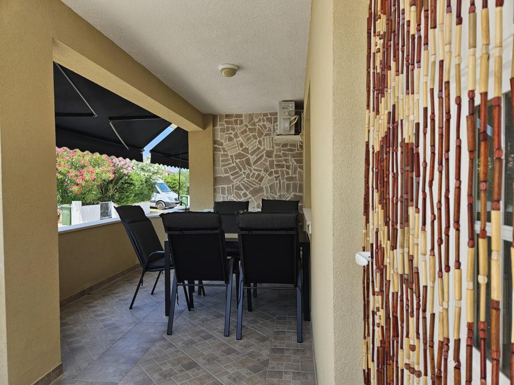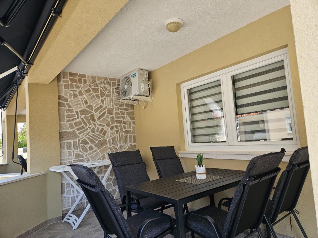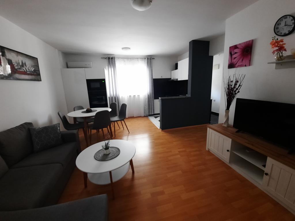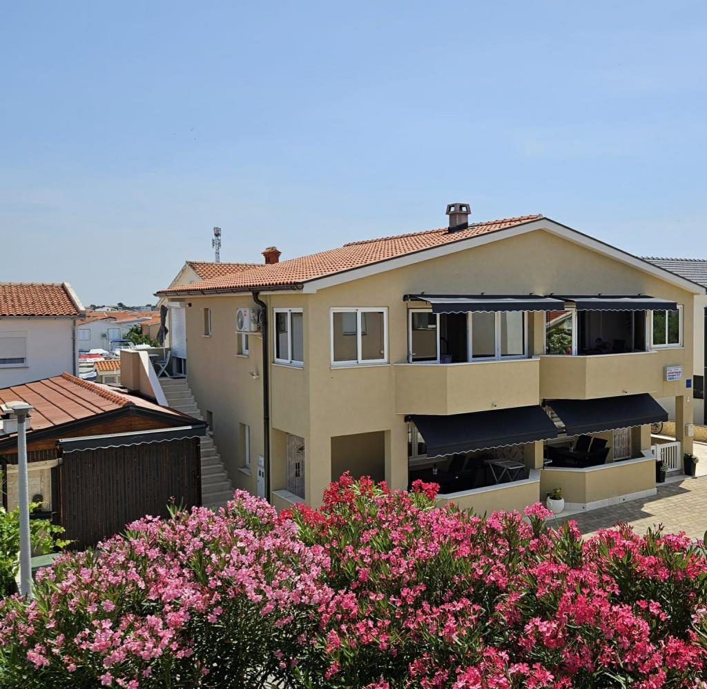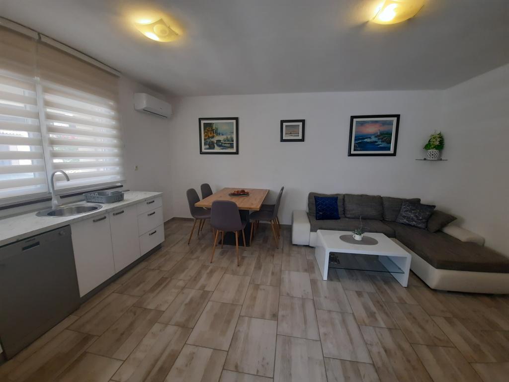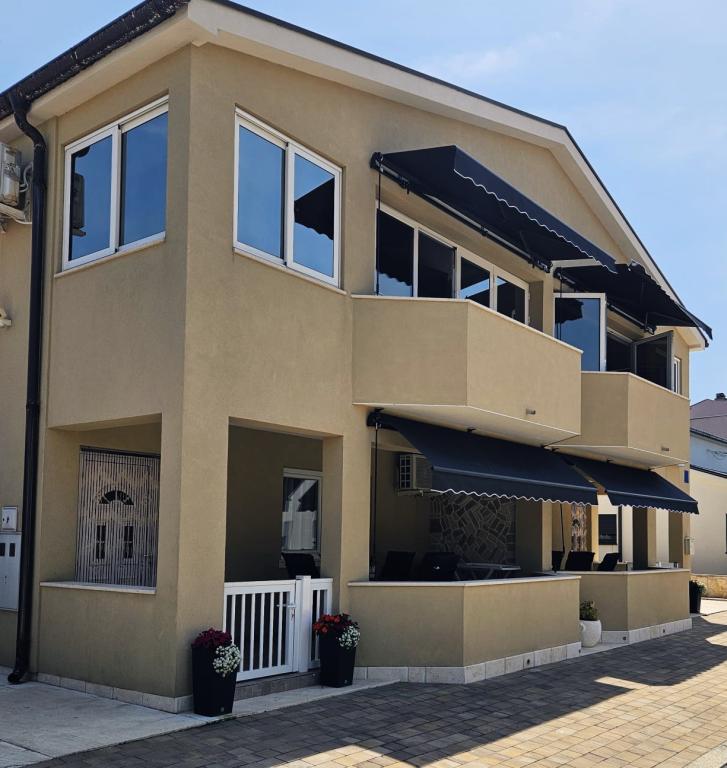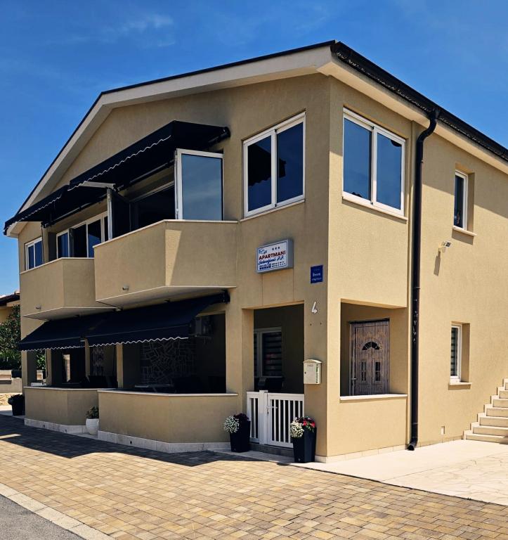 Apartmány se nacházejí v klidné části ostrova Vir, nově postavené, kompletně a moderně zařízené. Nacházejí se 100 m od pláže. Objekt se nachází 200m od obchodů, restaurací, kasin, pekáren, směnáren, bankomatů a kaváren. Apartmány se skládají ze dvou ložnic, obývacího pokoje, jídelny, kuchyně, koupelny, chodby a krytých teras.Každý apartmán má na terase gril. Apartmány jsou vybaveny klimatizací, WIFI, satelitní parabolou. Každý apartmán má vlastní parkovací místo.