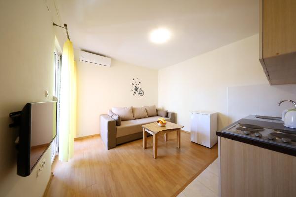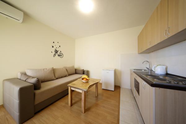 Byli jsme v Goranu v srpnu (dva dospělí + děti (9 a 2 roky)). Mega teplé (ale mělo to tak být :)) Byt je 100% kompatibilní s popisem. Čisté, dobře udržované, plně vybavené (nádobí, příbory, ložní prádlo, klimatizace, lednice, mikrovlnná trouba atd.). Blízko oblázkové pláže - dlouhá, regulovaná pláž s velmi jemným klesáním (ideální pro děti). V hospodě na krátké vzdálenosti, pekařství, obchod. Kousek od centra - ale nám to nevadilo. Majitelé jsou skvělí, velmi zdvořilí a ochotní lidé - ať už jsou všichni !!!