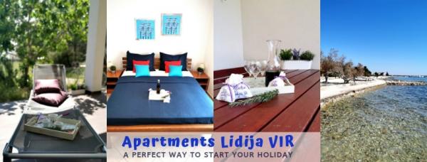 Apartmány Lidija se nacházejí v jižní části ostrova Vira v klidném prostředí. V přední části bytu je velká prostorná louka, která poskytuje soukromí během dovolené a je zde stezka, která vás vede přímo k pláži. Dolní přízemní apartmán má jednu ložnici s pohodlnou manželskou postelí a dvě rozkládací postele. Horní app v 1. patře má dvě ložnice a nově zrekonstruované od léta 2018. Oba apartmány obsahují vše, co potřebujete pro klidnou a příjemnou dovolenou: velká terasa s výhledem na moře, klimatizace, wi-fi, LCD / SMART TV, gril , ložní prádlo, ručníky, parkovací místo, venkovní sprcha a pračka a trouba v dolní části. Pláž pro děti je vzdálena pouhých 70 metrů nebo dvě minuty pěšky. Za pouhých pár minut chůze je na pláži obchod, pekárna a kavárna. Centrum Vira je vzdálené 20 minut chůze, takže během vaší dovolené nepotřebujete vůz. Byt je přátelský k domácímu mazlíčku s poznámkou, že psi musí být elegantní a socializovaní