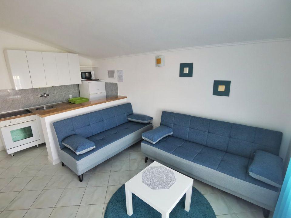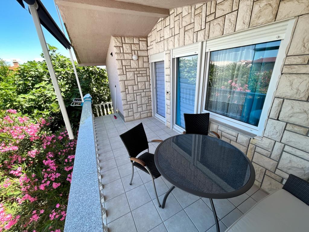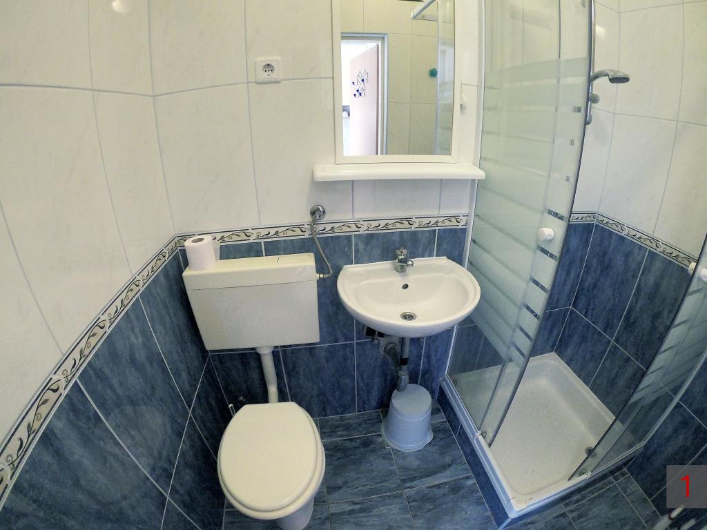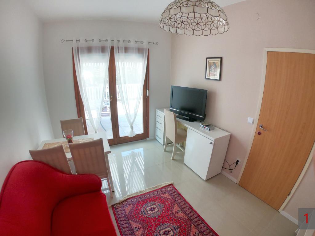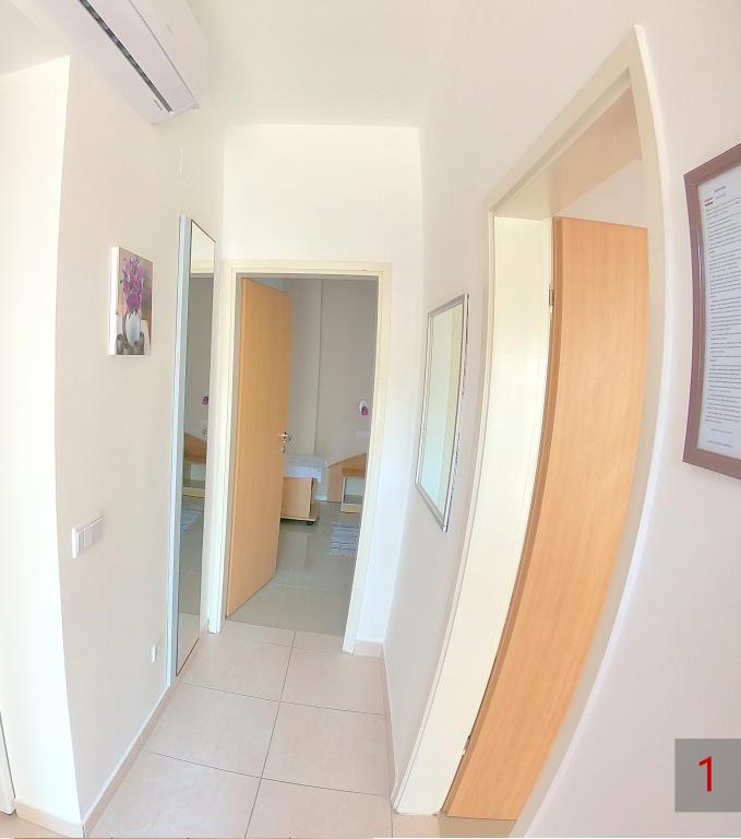 Byt - 1 - sestává ze dvou neprůchozích pokojů, samostatné kuchyně a koupelny. V jednom pokoji je manželská postel, ve druhém je rohová sedací souprava. K bytu náleží krytá terasa 50 m2 obklopená borovým lesem. Velkou výhodou bytu je jeho umístění na konci slepé, klidné a bez provozu, nabízí tak zaručený klid a soukromí. V budově je k dispozici parkovací místo a gril pro opékání.