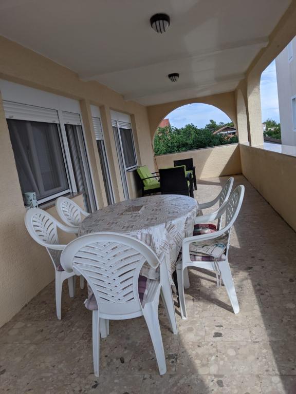 Na jižní straně ostrova je k pronájmu dům se 2 velkými byty. Každý apartmán je určen pro 4 - 7 osob. Každý apartmán má 3 ložnice, obývací pokoj, kuchyň, koupelnu se 2 sprchovými kabinami, 2 umyvadly, WC + 1 samostatné WC. Velká krytá terasa má výhled na jižní stranu. Byt ve druhém patře má výhled na moře. Apartmány jsou plně vybavené. Na velkém dvoře je venkovní sprcha, gril a velké parkoviště.
