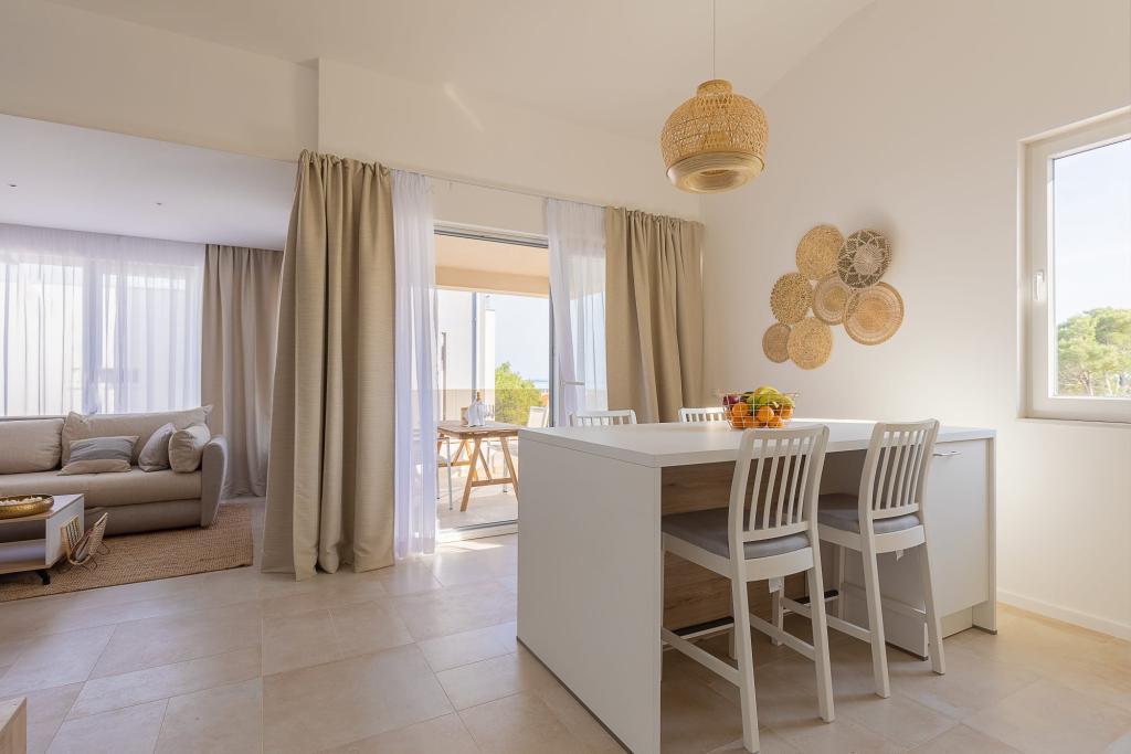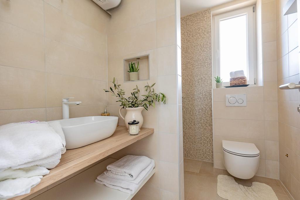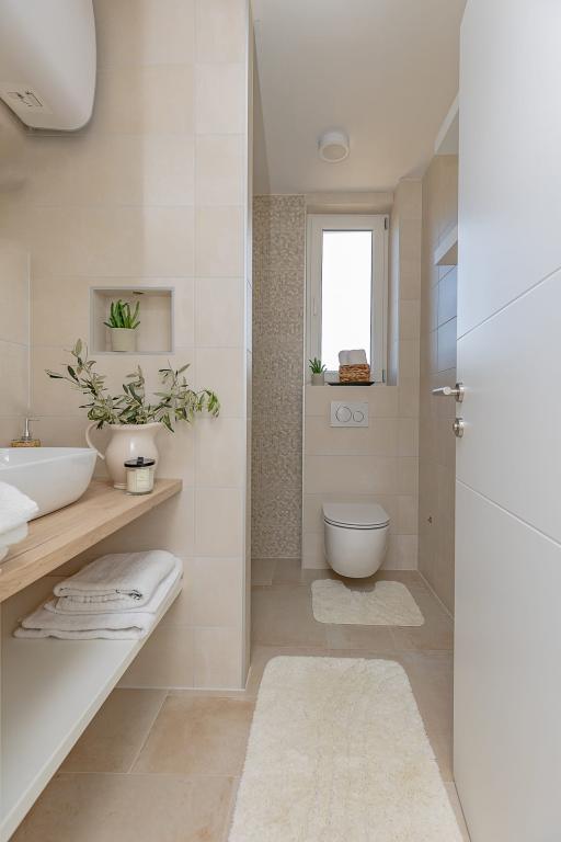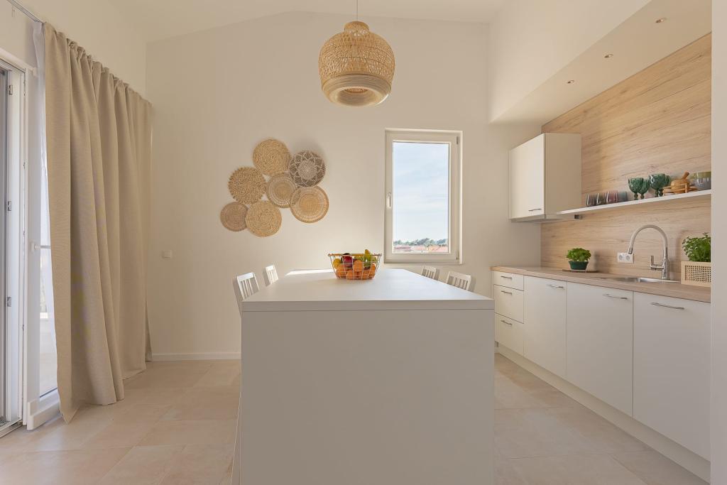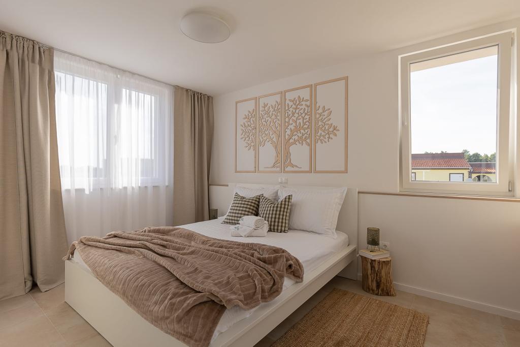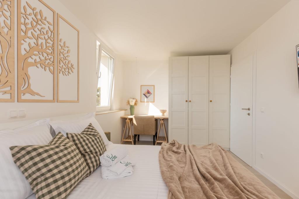 Naše luxusní apartmány se nacházejí v centru města, v blízkosti všech restaurací, obchodů a hlavních atrakcí, což z nich činí ideální volbu pro bezstarostnou dovolenou bez nutnosti auta. Pláž je jen kousek pěšky. Objekt je zbrusu nová budova s pěti samostatnými apartmány, zařízenými se zvláštním důrazem na styl, eleganci a kvalitu. Prostorné a luxusně zařízené apartmány poskytují vysokou úroveň pohodlí a každý apartmán má balkon nebo terasu ideální pro relaxaci během dne i večera. Interiéry jsou pečlivě navrženy a vybaveny přírodními materiály, které vytvářejí příjemnou, vřelou a sofistikovanou atmosféru. Hostům je k dispozici soukromé parkování přímo u vchodu do budovy, což dále přispívá k pohodlí a komfortu jejich pobytu. Tyto apartmány jsou ideální pro hosty, kteří hledají kombinaci prvotřídní lokality, moderního luxusu a pocitu domova.