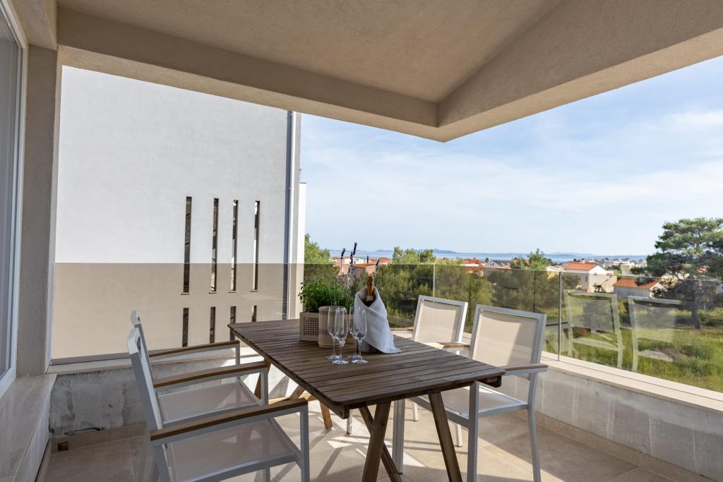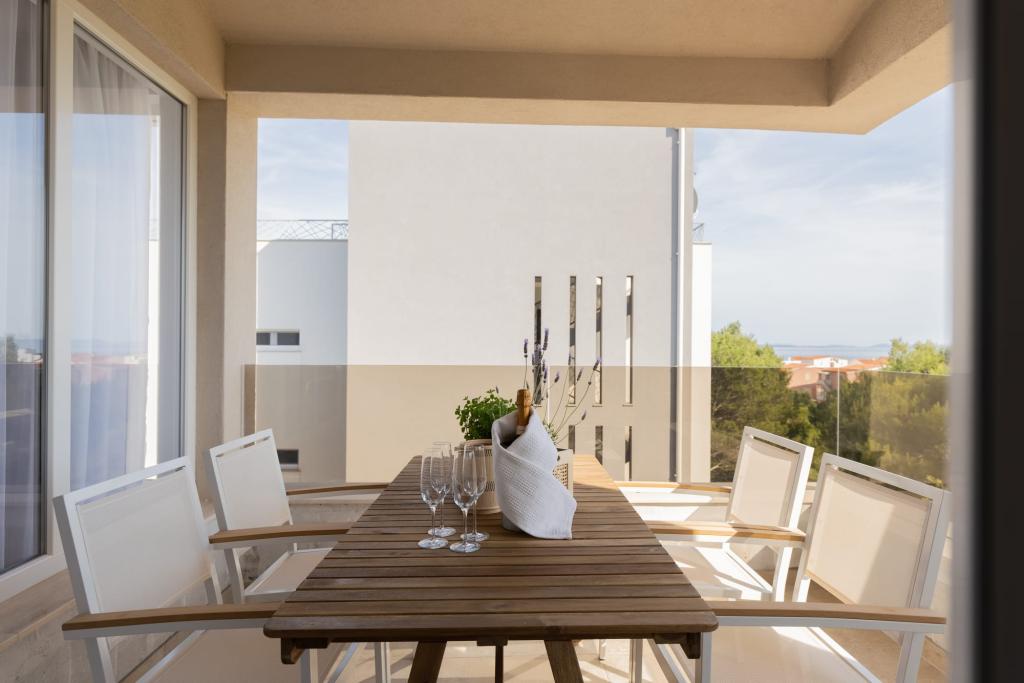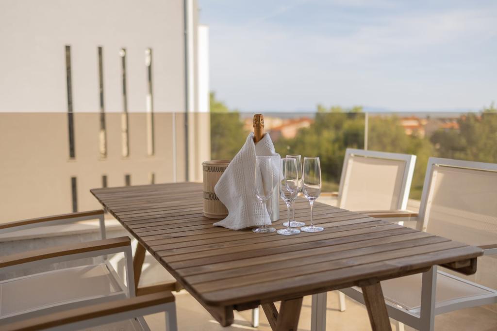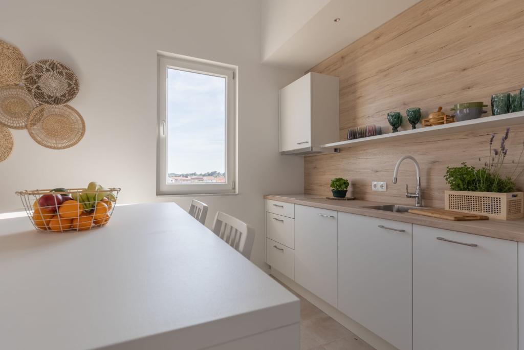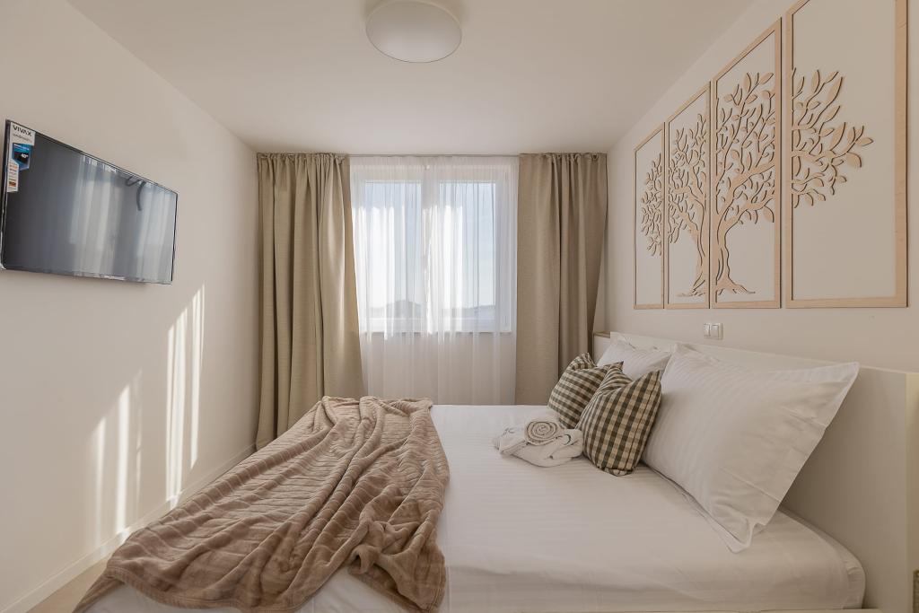 Naše luxusní apartmány se nacházejí v centru města, v blízkosti všech restaurací, obchodů a hlavních atrakcí, což z nich činí ideální volbu pro bezstarostnou dovolenou bez nutnosti auta. Pláž je jen kousek pěšky. Objekt je zbrusu nová budova s pěti samostatnými apartmány, zařízenými se zvláštním důrazem na styl, eleganci a kvalitu. Prostorné a luxusně zařízené apartmány poskytují vysokou úroveň pohodlí a každý apartmán má balkon nebo terasu ideální pro relaxaci během dne i večera. Interiéry jsou pečlivě navrženy a vybaveny přírodními materiály, které vytvářejí příjemnou, vřelou a sofistikovanou atmosféru. Hostům je k dispozici soukromé parkování přímo u vchodu do budovy, což dále přispívá k pohodlí a komfortu jejich pobytu. Tyto apartmány jsou ideální pro hosty, kteří hledají kombinaci prvotřídní lokality, moderního luxusu a pocitu domova.