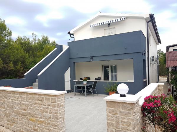 Dům se nachází v borovém lese 35 m od moře, na konci Vir, ulice Mirna, ideální pro dovolenou, protože jsme daleko od hluku městských pláží, dům má patro, kde jsou dvě ložnice s velký obývací pokoj, wc, sprcha a prádelna kuchyň je vybavena všemi potřebnými věcmi, mikrovlnnou troubou, kávovarem, varnou konvicí a nádobím na vaření, dvě terasy, v přízemí domu dva apartmány, každý vybavený kuchyňkou , WC a sprcha, jedna ložnice a obývací pokoj, apartmán má vlastní terasu a další terasa s grilem, dům pojme 10 až 13 osob, . Rádi vás pohostíme. Dětská postýlka k dispozici.
