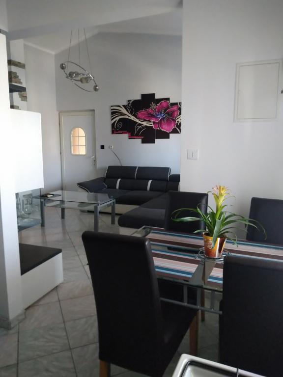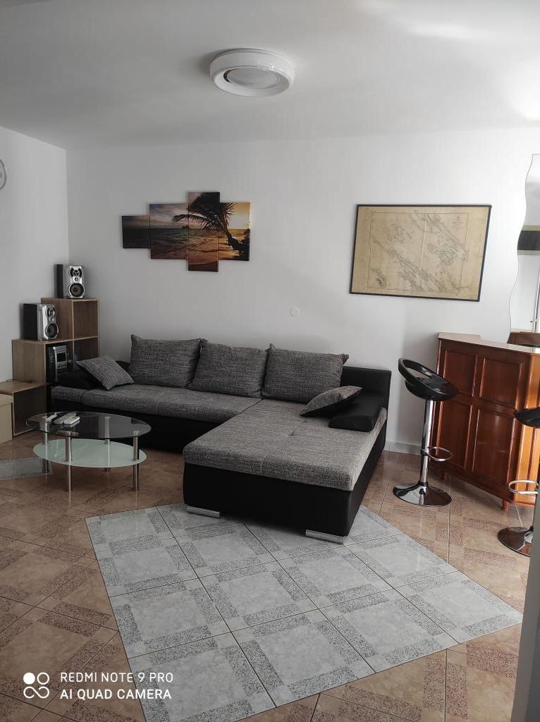 Plně vybavený apartmán cca 70m2. . 2 ložnice, obývací pokoj (TV, SAT TV, DVD, internet, klimatizace), kuchyň, koupelna, velká terasa s výhledem na moře, parkování, gril... 50m od pláže...