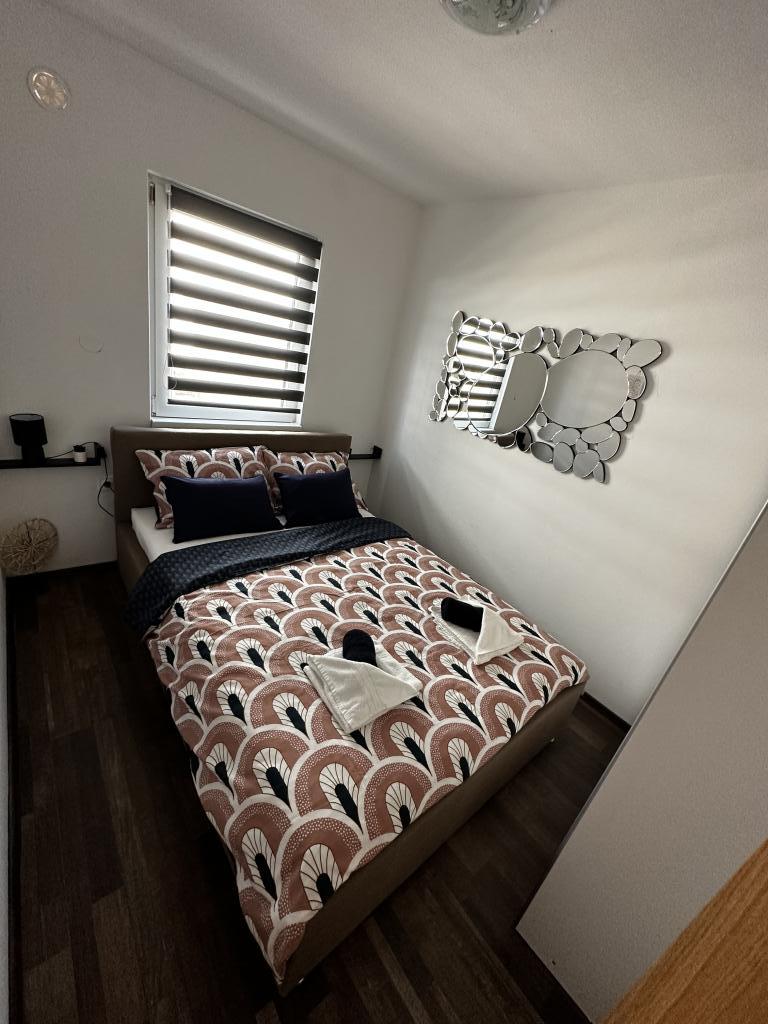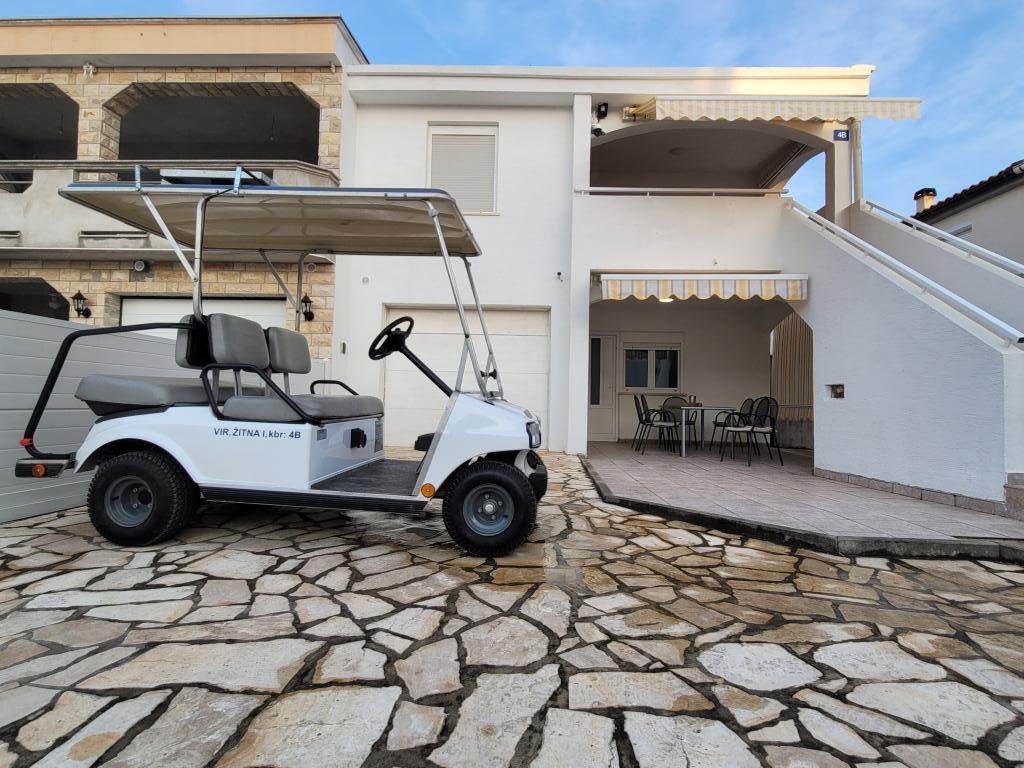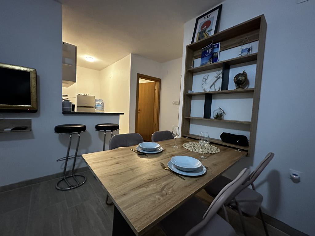 Pronájem apartmánu pro 4+2 osoby na ostrově Vir, Žitna I., ve slepé a klidné ulici, parkování pro 3 vozidla, dvůr, terasa, gril, vzdálenost od pláže a centra města Vir 750 metrů , 8 minut chůze nebo 2 minuty jízdy K apartmánu je k dispozici "Clubcar" pro 4 osoby za příplatek 15 eur na den a je možné si pronajmout elektrický moped za 15 eur na den. Byt se skládá ze dvou ložnic, koupelny s WC, kuchyně a obývacího pokoje s jídelnou, v obývacím pokoji je rozkládací pohovka. Klimatizace, wi-fi, TV, mikrovlnná trouba, výrobník ledu, vysoušeč vlasů, žehlička.
