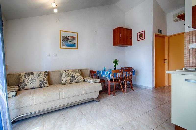 Pobytová taxa není v ceně.Denní cena apartmánu zahrnuje pronájem apartmánu, náklady na vodu a elektřinu, veškeré vybavení v apartmánu, ložní prádlo a ručníky (výměna jednou týdně), turistickou daň, používání klimatizace až na 8 hodin (za delší používání se účtuje tarif 0,50 Euro/hodina), používání nábytku na terasách a zahradě, používání grilu, používání Wi-Fi a parkovacího místa. Další náklady: - domácí mazlíček v apartmánu (pouze malý) - 25 Euro/den - kauce (vratná) - 100 Euro/apartmán
