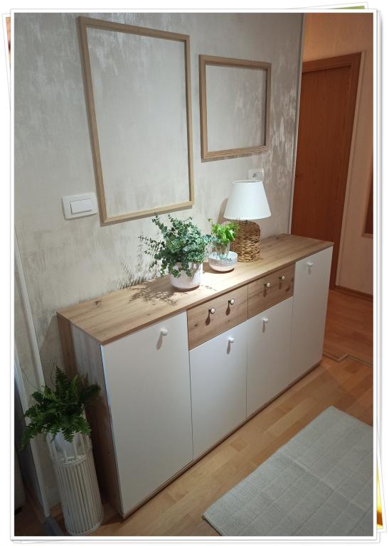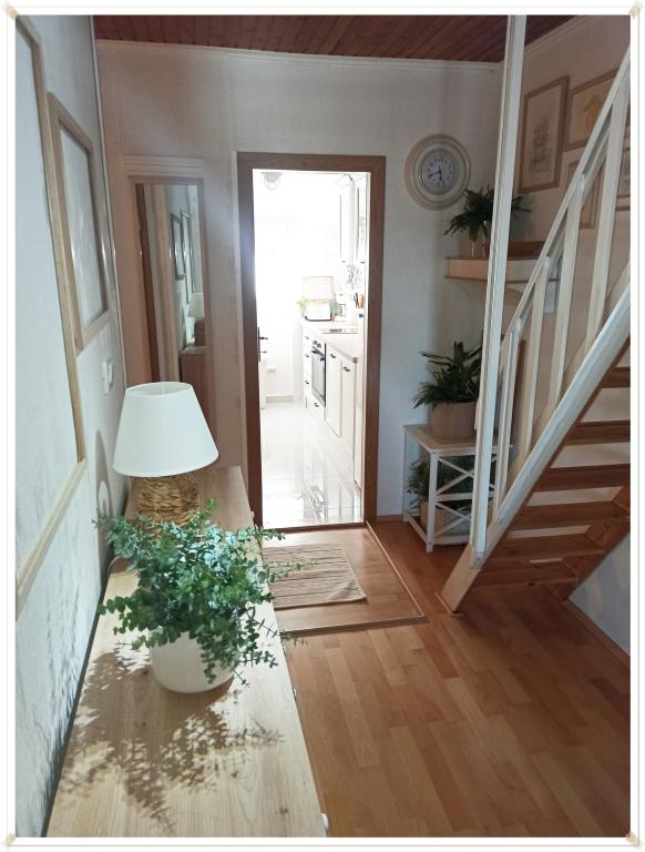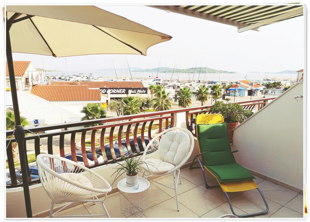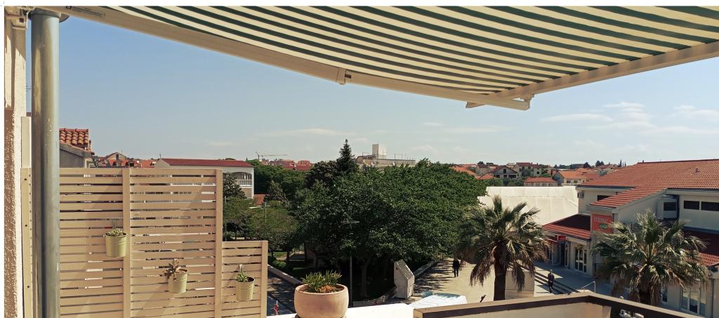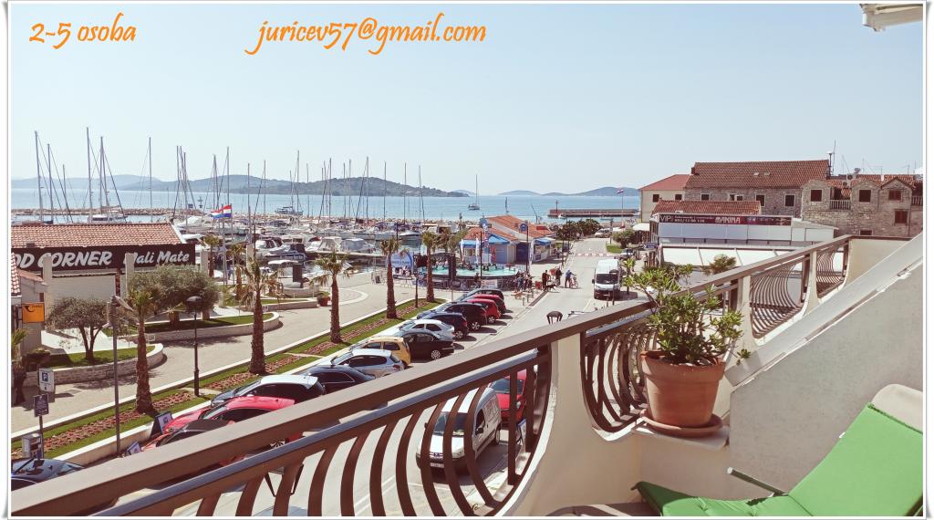 Apartmán se nachází v centru Vodice, má obývací pokoj s rozkládací pohovkou, kuchyň, dvě dvoulůžkové ložnice + velká postel + dětská postýlka, dvě koupelny se sprchami, dva ohřívače vody, dvě klimatizace, dva stropní ventilátory, terasu s výhledem na moře, přístav, park. Je plně vybaven pro delší pobyt (internet, pračka, myčka nádobí, kuchyňská linka, ručníky, fén, žehlička). Je vzdálený přibližně 350 m od západní nebo východní pláže. https://youtu.be/boq1Agcy7bs