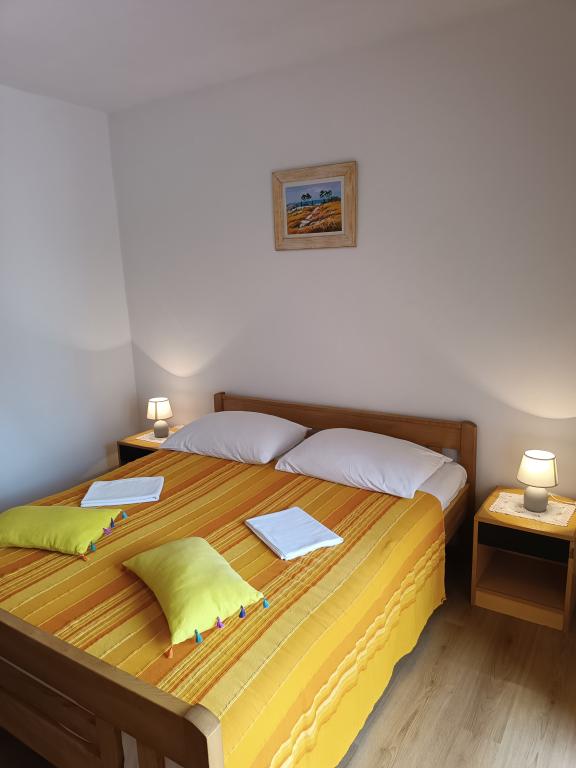 BYT PRO 4 OSOBY se skládá ze 2 ložnic (jedna z nich má balkon), kuchyně s obývacím pokojem s terasou a koupelny Je vybaven myčkou a pračkou. na zboží je o velikosti 75m2...GARÁŽKA je určena pro 2 osoby o velikosti 26m2 s přilehlou terasou. Nachází se v podkroví. Druhá garsonka o velikosti 28m2 se nachází v prvním patře. Apartmány se nacházejí v blízkosti hotelů Imperial a Olympia a pouhých 500 m odtud jsou pláže, restaurace, bary a zábavní parky pro nejmenší. Večer se můžete těšit na různé kulturní akce. Doporučujeme také návštěvu města Šibenik (cca 10 km), které je známé svou katedrálou, pevnostmi a bohatým historickým centrem. Jsou zde také nevyhnutelné národní parky Krka a Kornati a turistické letovisko Solaris. Pro ty odvážnější se nabízí i bungee jumping z Šibenického mostu s krásným výhledem na město. Těšíme se na Váš příjezd.