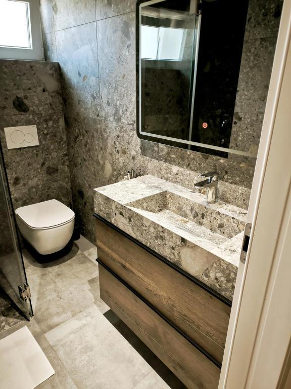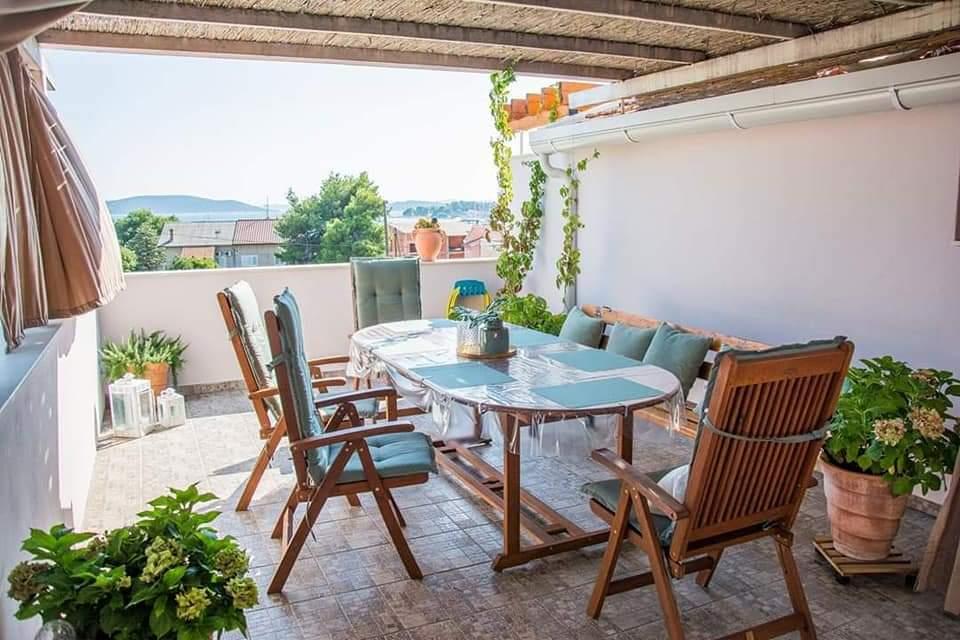 Plně zařízené apartmány, které se nacházejí v klidné části Vodic, ve druhé řadě od moře. Objekt se nachází 3 minuty chůze od hlavní pláže a 10 minut do centra... Výhodou našich apartmánů je, že vše je blízko domu, takže nemusíte používat auto... Apartmány mají krásnou velkou terasu, ze které je výhled na moře, ostrovy a centrum... Celé patro lze pronajmout pro 9 osob, ideální pro velkou rodinu...