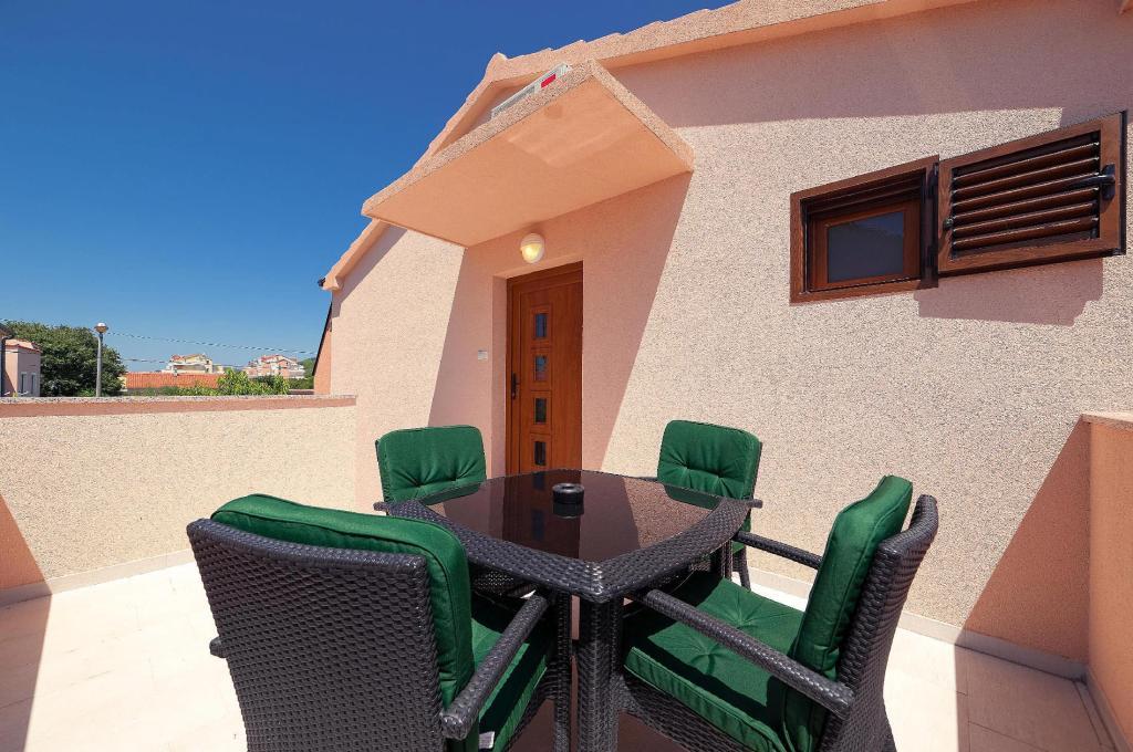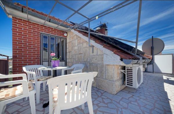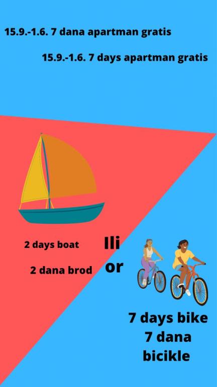 Plně a moderně vybavené apartmány v klidné části Vodice, vzdálené 300 metrů od moře. Zařízení se nachází 5 minut chůze od Blue Beach a hotelu Punta a 15 minut od centra Vodice. Na pláži je největší aquapark na Jadranu, určený pro děti i dospělé. Nabízíme kvalitní ubytování v nových, plně vybavených a moderních apartmánech. Apartmán v patře 48 m2 se skládá z ložnice, koupelny se sprchovým koutem, kuchyně s jídelnou, obývacího pokoje s postelí, dvou teras s výhledem na moře, dvou LCD TV/SAT přijímačů, klimatizace, WiFi internet zdarma a parkovací místo. Větší apartmán v přízemí o velikosti 70 m2 se skládá ze dvou ložnic, koupelny se sprchovým koutem, kuchyně, jídelny, obývacího pokoje s postelí, dvou velkých teras, tří LCD TV/SAT přijímačů, klimatizace, bezplatného WiFi internetu a dvou parkovacích míst prostory.