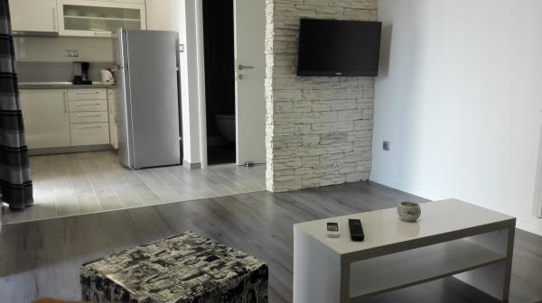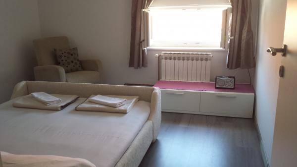 Byt čistý, dobře udržovaný, plně vybavený s velkou terasou, který se nachází v klidné oblasti. V blízkosti je pekárna a obchod, v blízkosti pláže s oblázky. Velmi přátelští majitelé, kterým děkuji a srdečně zdravím.