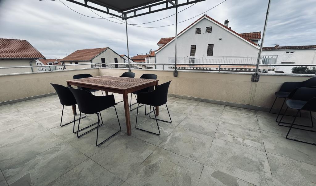 Apartmán v blízkosti centra Vodice, poblíž městského trhu a autobusového nádraží, jen pár minut chůze. Moderně vybavené v klidné oblasti. Na pláž snadná procházka asi 10 minut. Nachází se uprostřed mezi dvěma oblíbenými plážemi, Blue Beach a Male Vrulje.