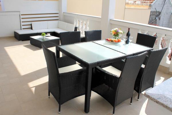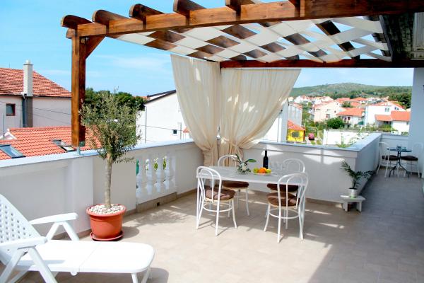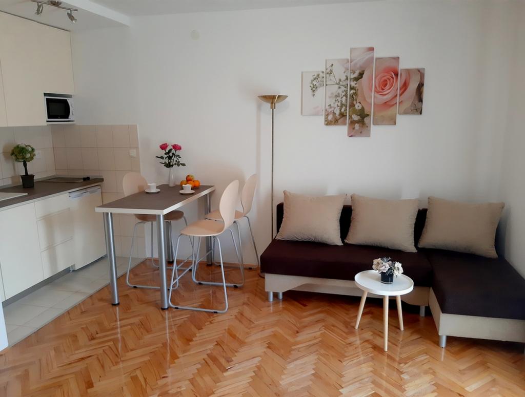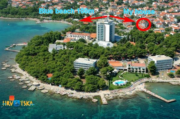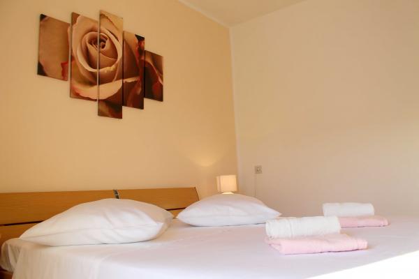 Jsme se nacházejí v blízkosti hotelu Punta. Vzdálenost z našich bytů, centrum města a modrá pláž je vzdálena asi 100 metrů. Každý apartmán má balkon nebo terasu obklopenou zelení. Veškerá infrastruktura je vybaven klimatizací, satelitní TV, Wi-Fi připojením a je k volnému použití pro grilování. Parkování je v přední části domu s nádvoří obklopené s plotem, a je to také zdarma. Strávit svou dovolenou v našich apartmánech. Welcome !!!