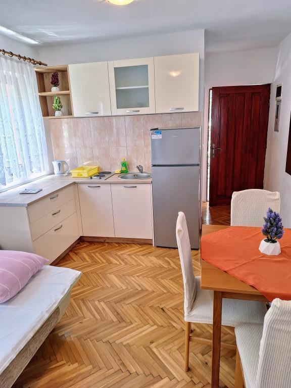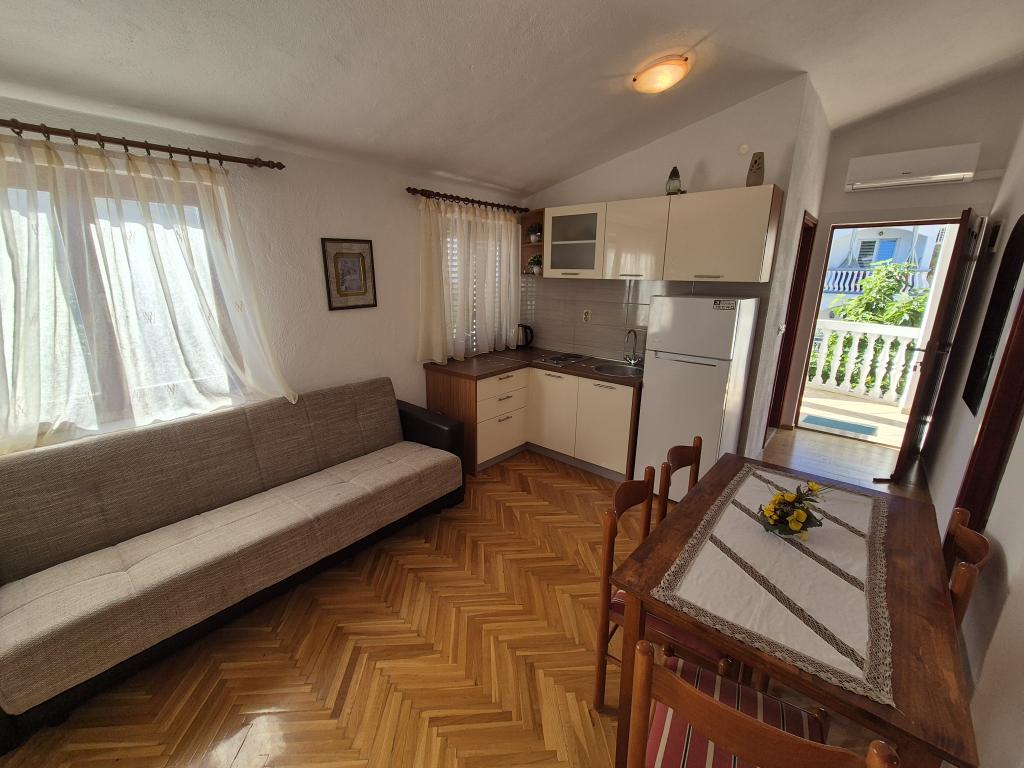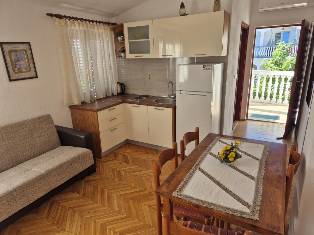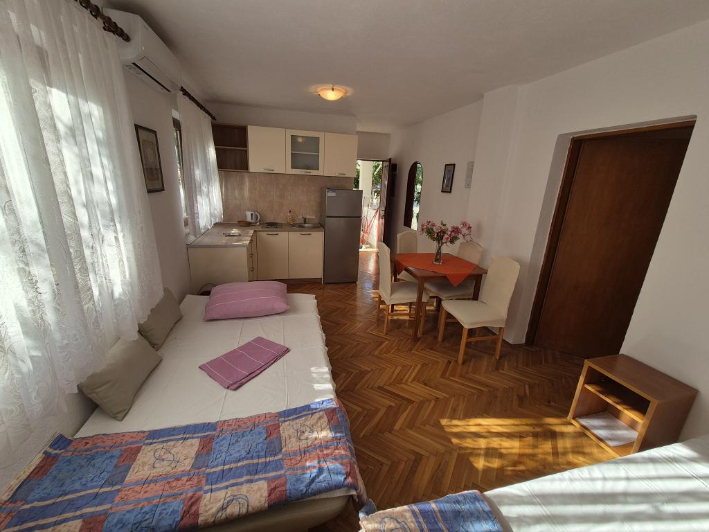Velmi přátelští a přístupní hostitelé. Domácí víno a fíková pálenka na uvítanou. Byt je velmi čistý a uklizený, s pěknou terasou v přední části, obklopen zelení a chladem. V blízkosti pláže a promenády. Všechna chvála!