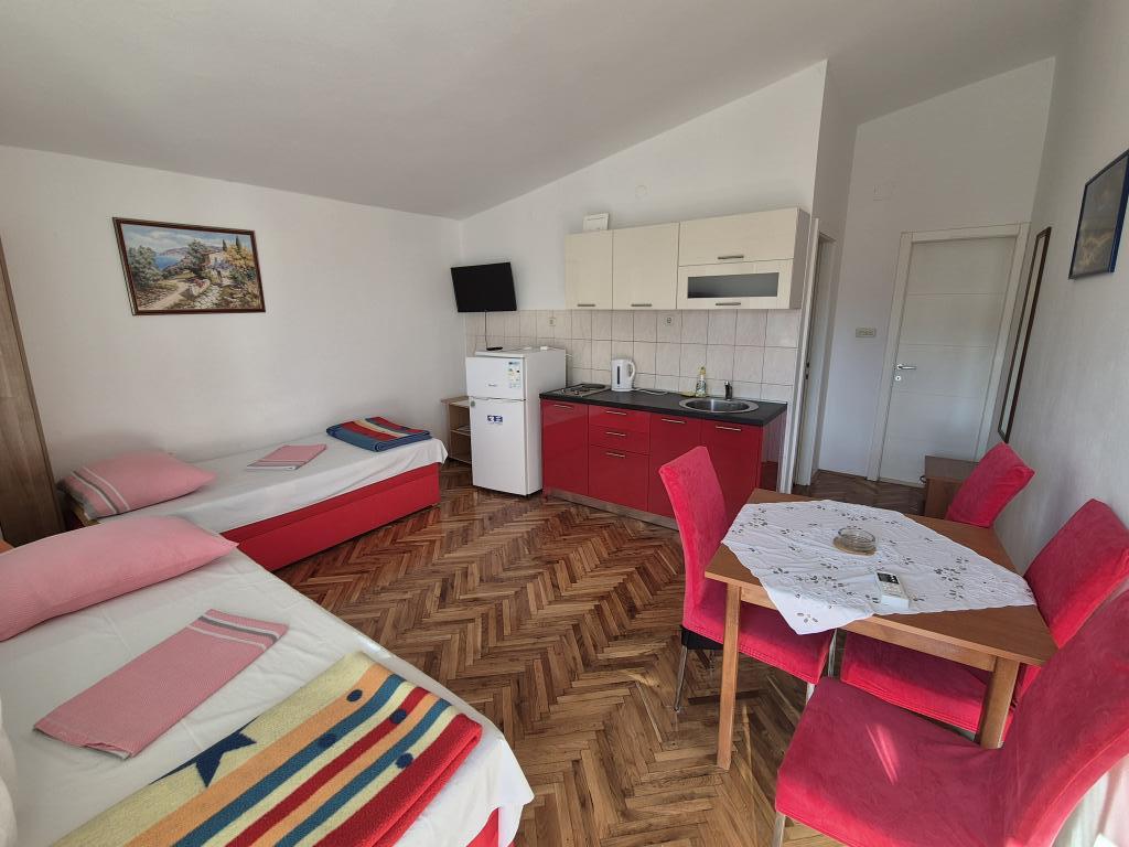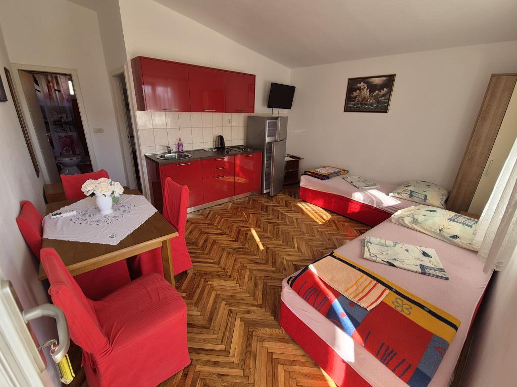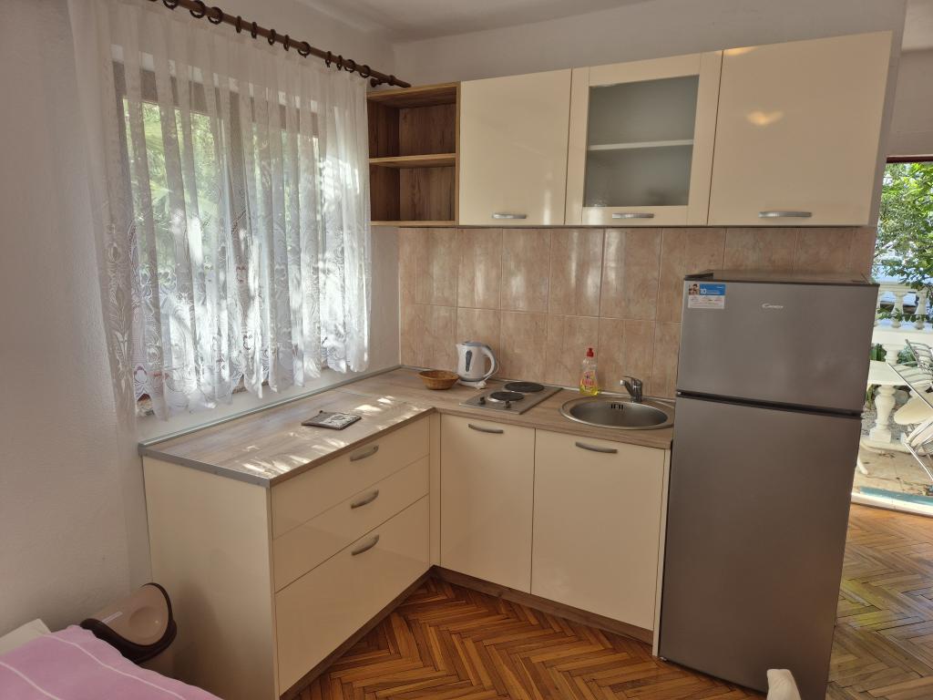 Nádherné zařízení, používali jsme aplikaci 2+2+2, byli jsme potěšeni čistým a uklizeným ubytováním, prostorností, klidem a pohodou. Apartmány v množství zeleně a stínu v letních vedrech. Blízko pláže. Majitelé jsou velmi vstřícní, přátelští a k dispozici pro všechny dotazy. Zaujala nás především pomoc majitele s grilem, přípravou ohně a vším, co jsme ke grilování potřebovali. Domácí víno na přivítání, ale i pro příjemný pobyt. Nenápadné, přesto dostupné! Gratulujeme, příští rok se vrátíme!