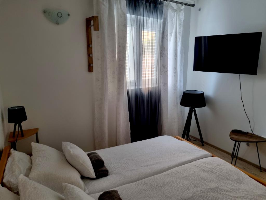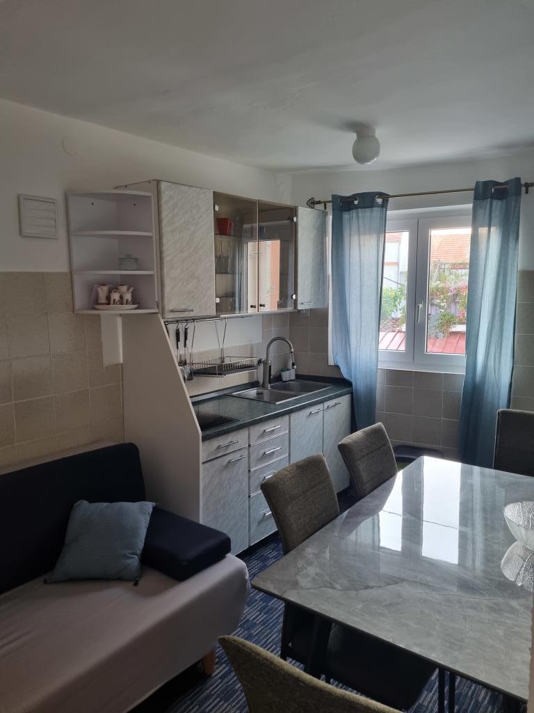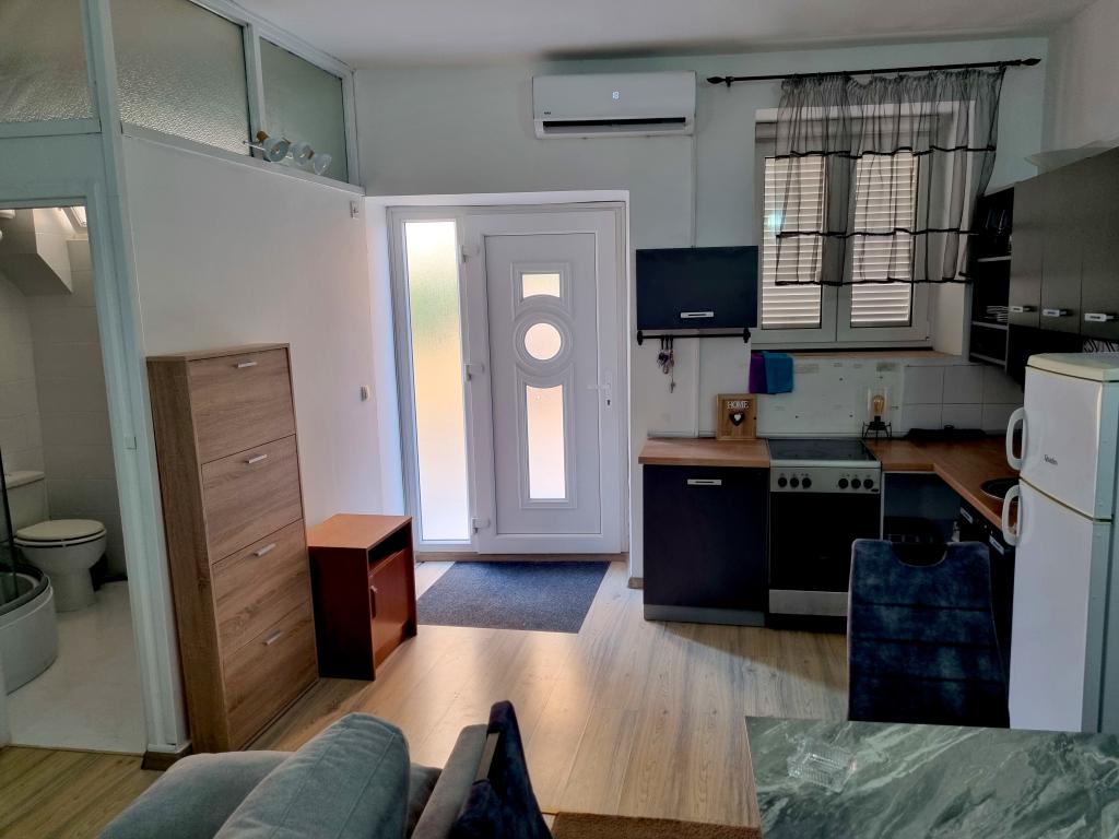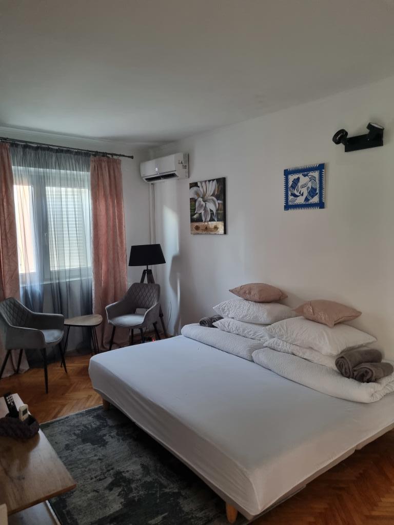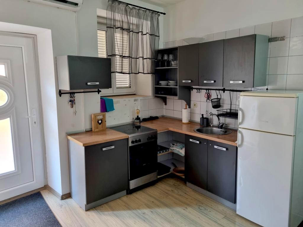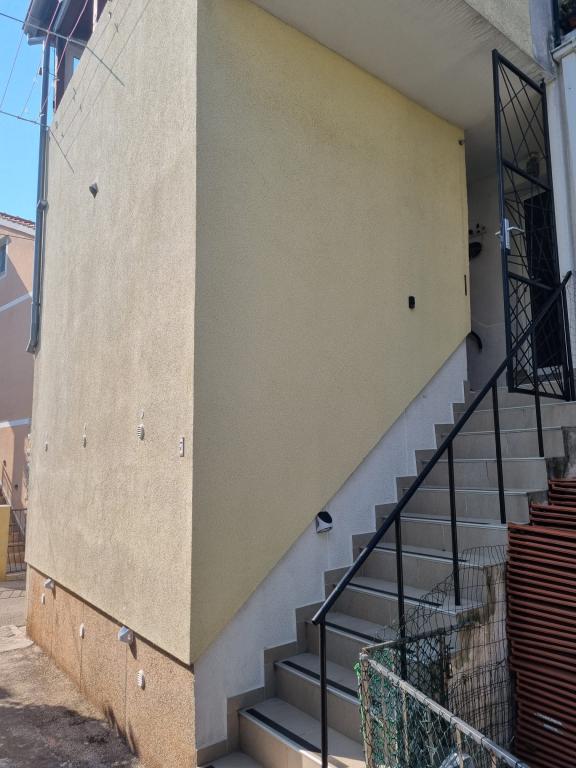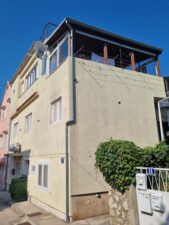 Dům s apartmány se nachází v centru Vodice, v malé boční uličce. Hosté obou apartmánů mají k dispozici krytou terasu s nástěnnou malbou a prostorem pro odpočinek a setkávání, a také střešní terasu s grilem, lehátky a výhledem na moře a město.